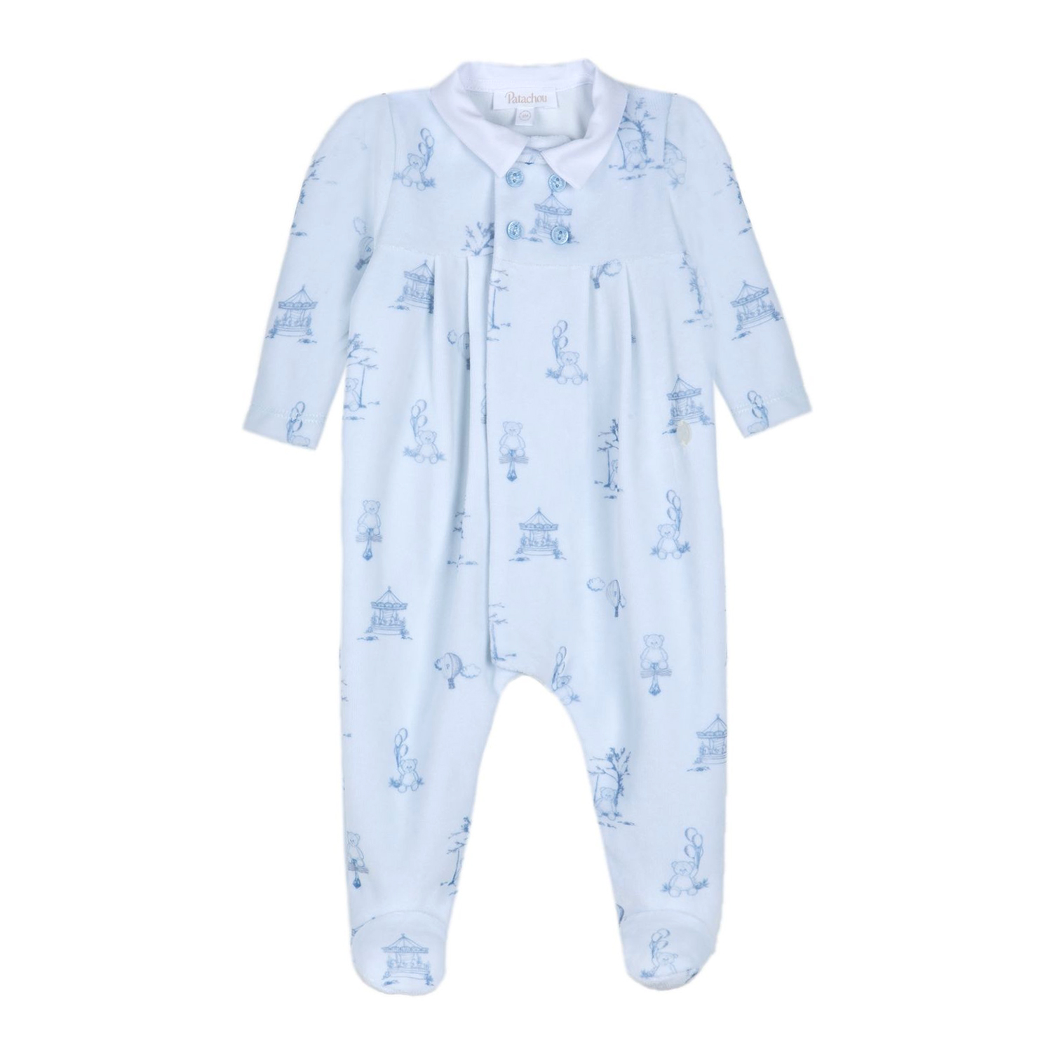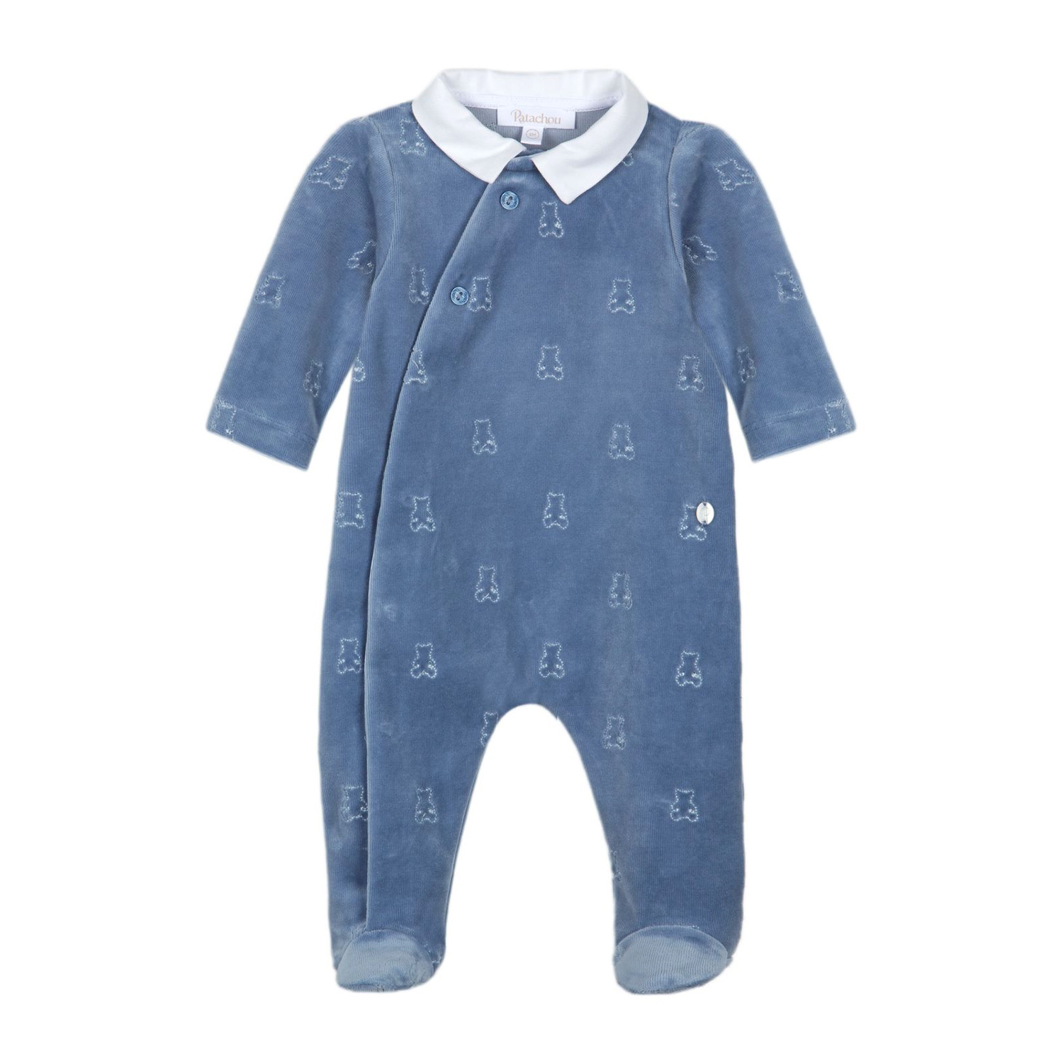 Patachou Air-force Blue Cotton Velour Bodysuit