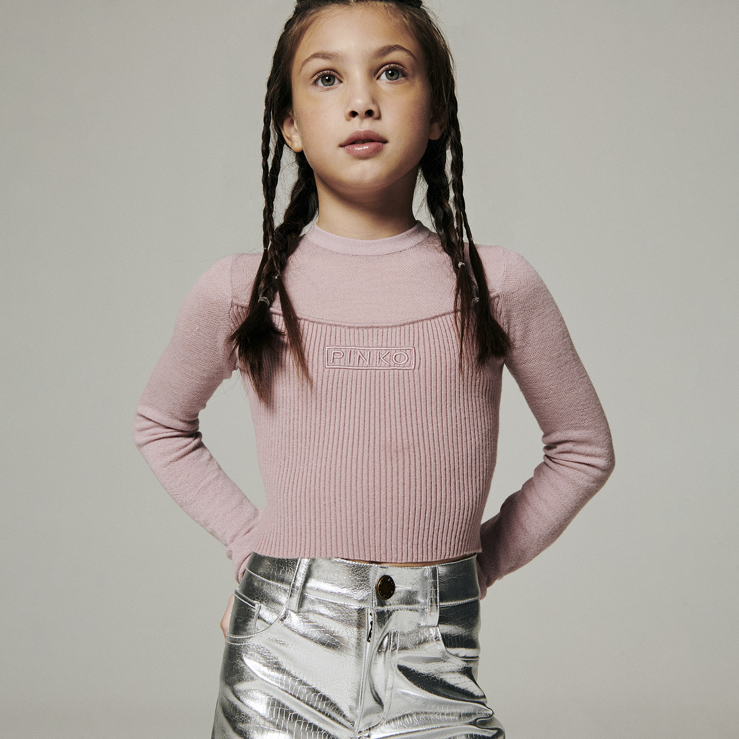 • Pinko Dusty Pink Ribbed Knitted Blouse