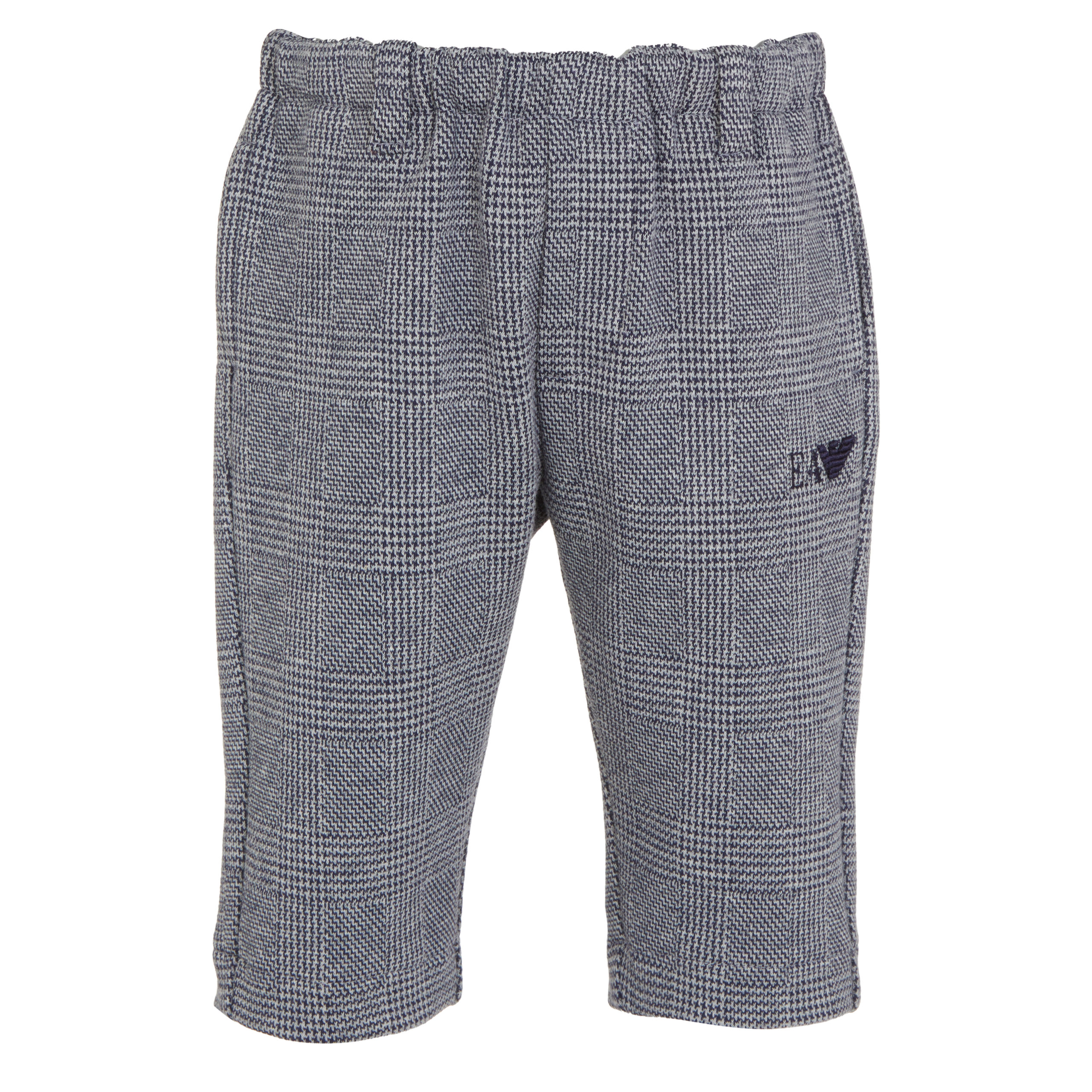 • Emporio Armani Γκρι Καρό Βαμβακερό Ελαστικό Παντελόνι