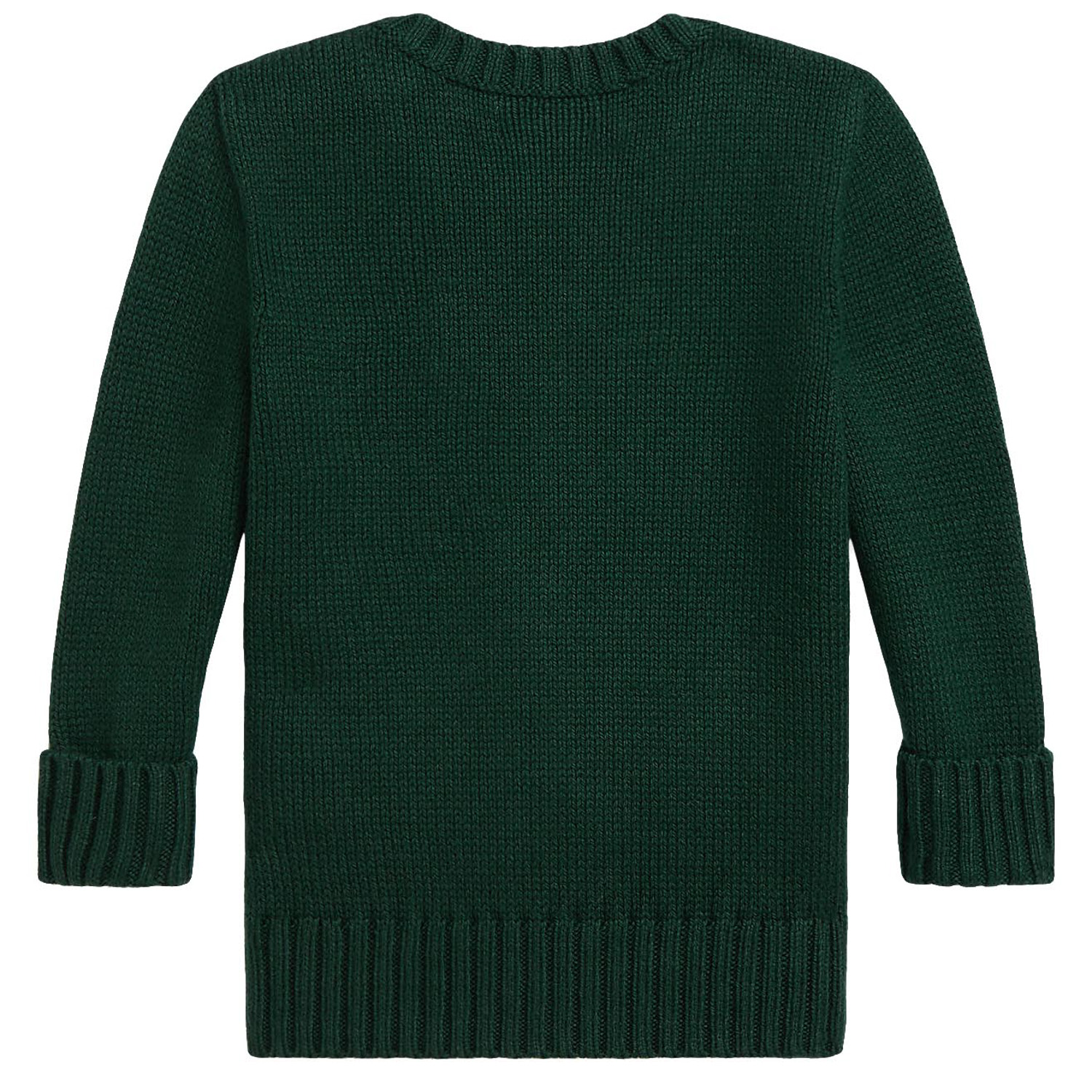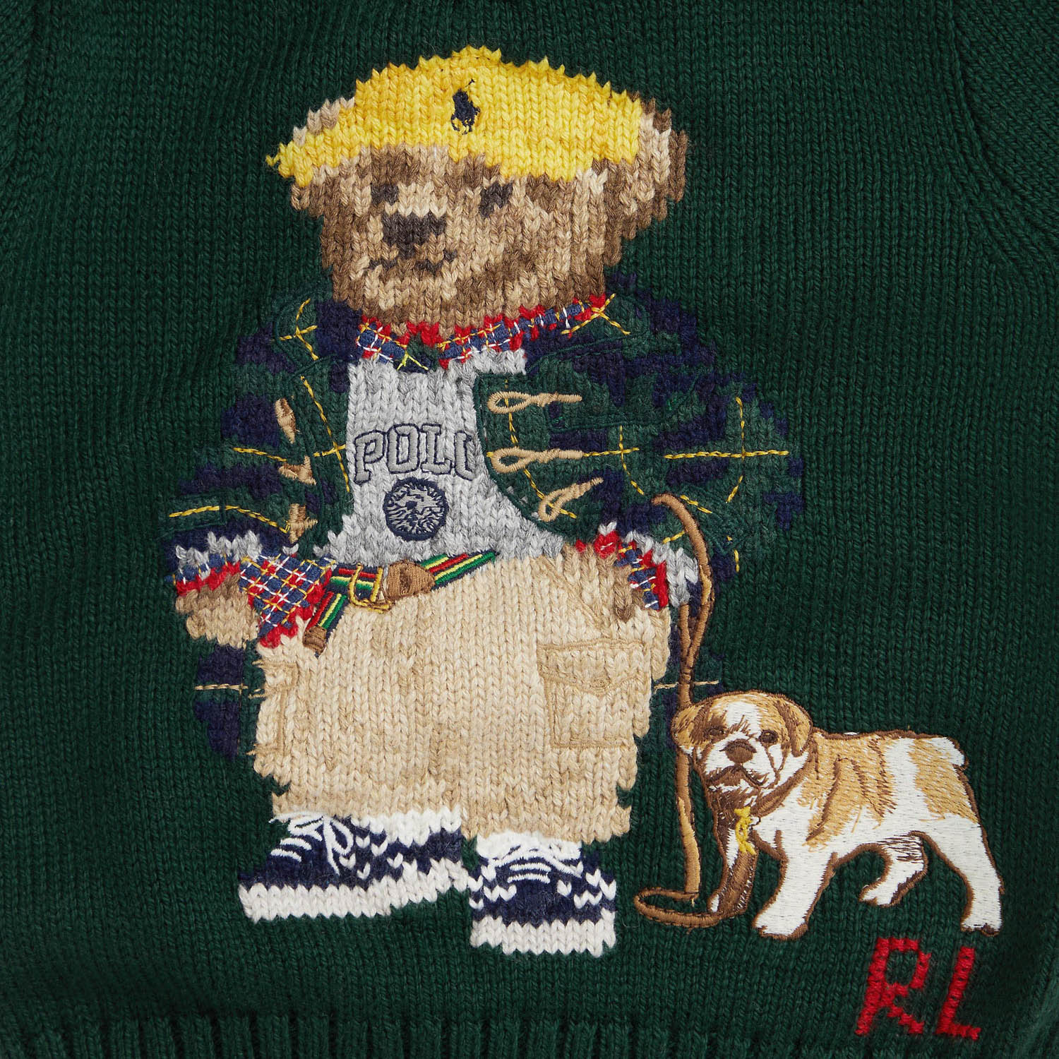Polo Ralph Lauren σκούρο πράσινο βαμβακερό πλεκτό με φιγούρα Teddy και κούμπωμα με κουμπιά στον ώμο.