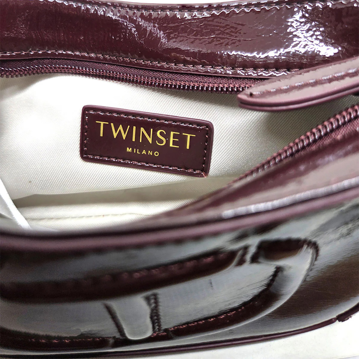 Twinset μπορντώ-βουργουνδί τσάντα ώμου από οικολογικό δέρμα με στυλ βινύλ και ανάγλυφο λογότυπο. Δαιθέτει ένα αφαιρούμενο λουρί ώμου με λογότυπα.