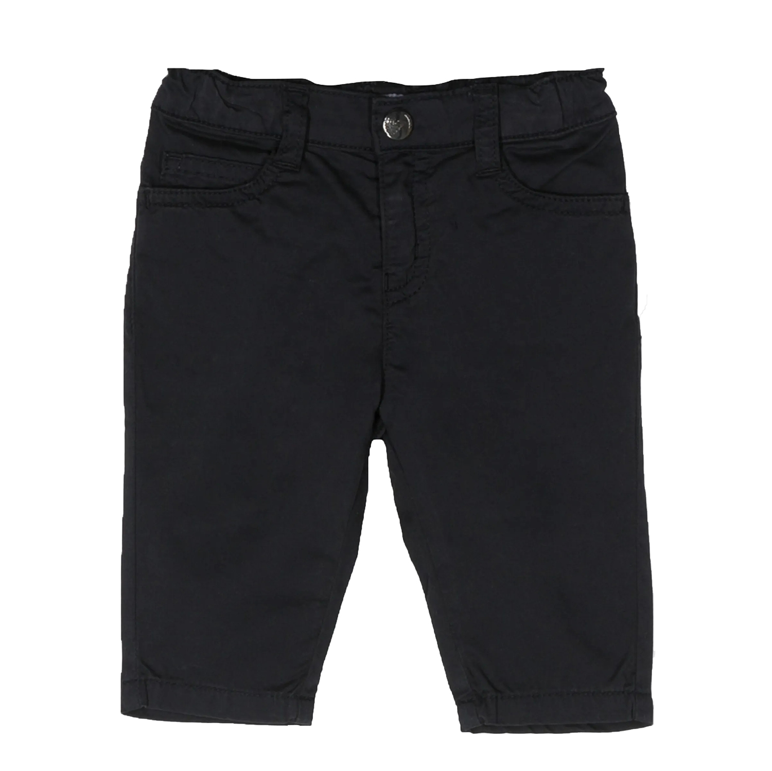 Emporio Armani σκούρο μπλε βαμβακερό παντελόνι (ποπλίνα) με ελαστική μέση και μεταλλικό λογότυπο στο πίσω μέρος.