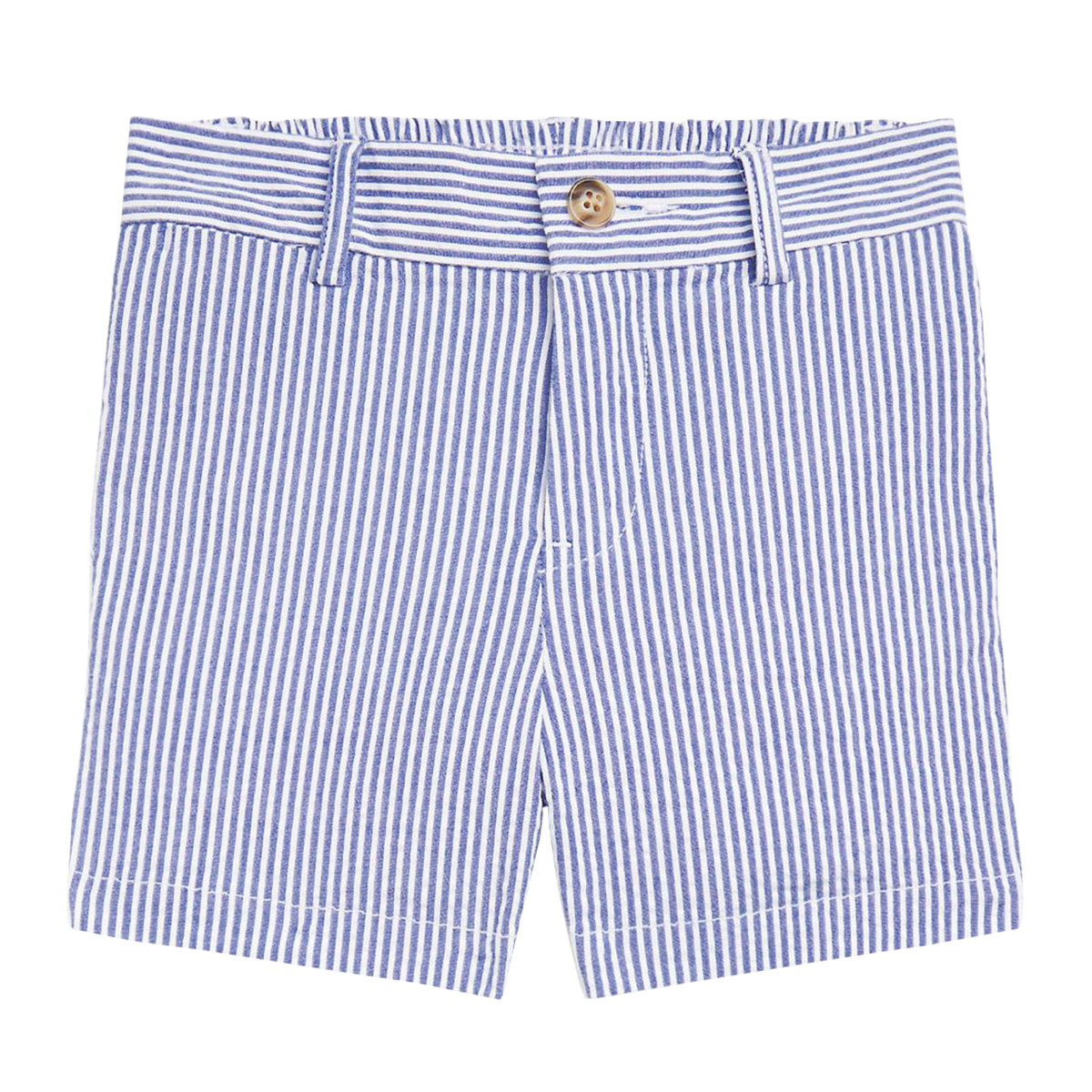 Polo Ralph Lauren γαλάζιο ριγέ σορτς από οργανικό βαμβάκι, με ελαστική μέση, κουμπί και κεντημένο λογότυπο στο πίσω μέρος.