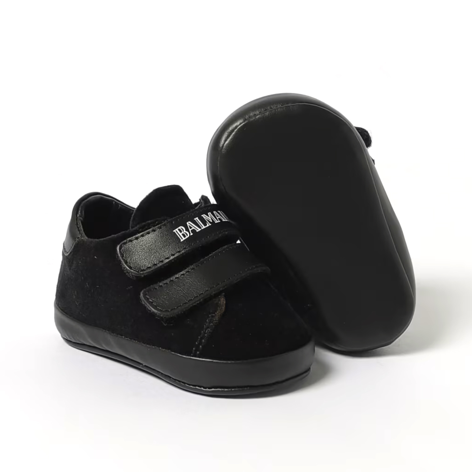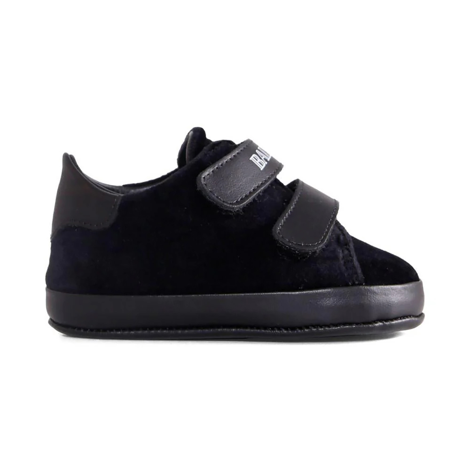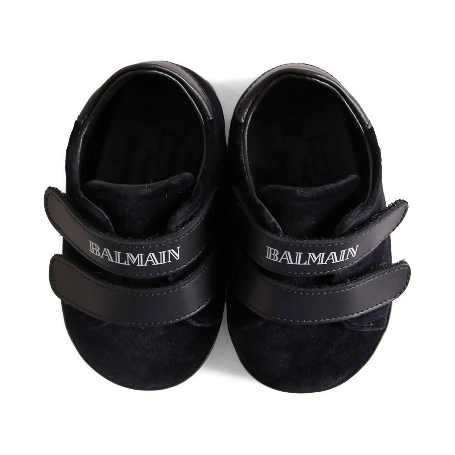 Balmain Paris μαύρα βελούρ sneakers, με δερμάτινο velcro κούμπωμα με λογότυπα.