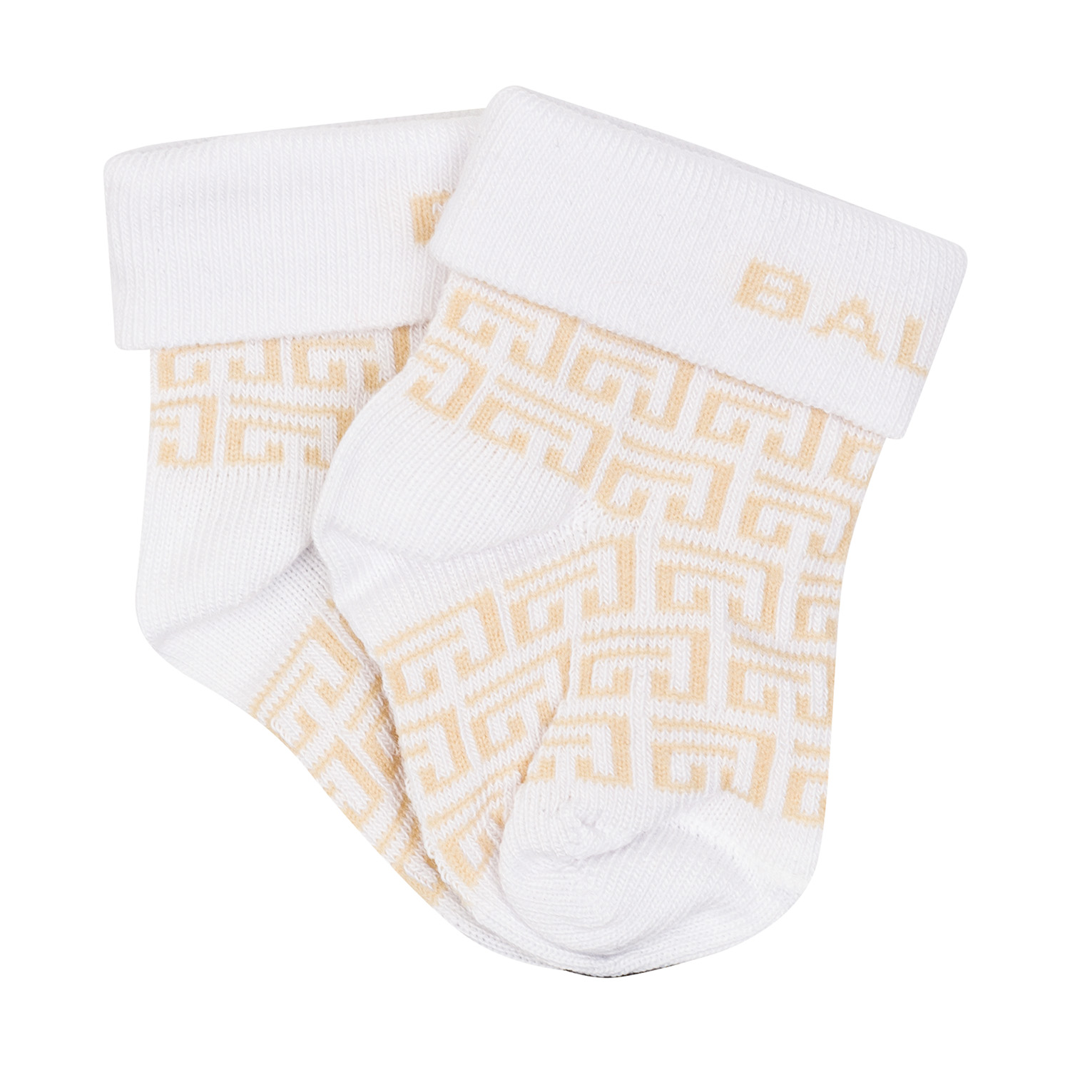 Balmain Paris τριπλό, πολύχρψμο σετ βαμβακερές κάλτσες. Διαθέτουν λογότυπα και σχέδιο λαβύρινθου.