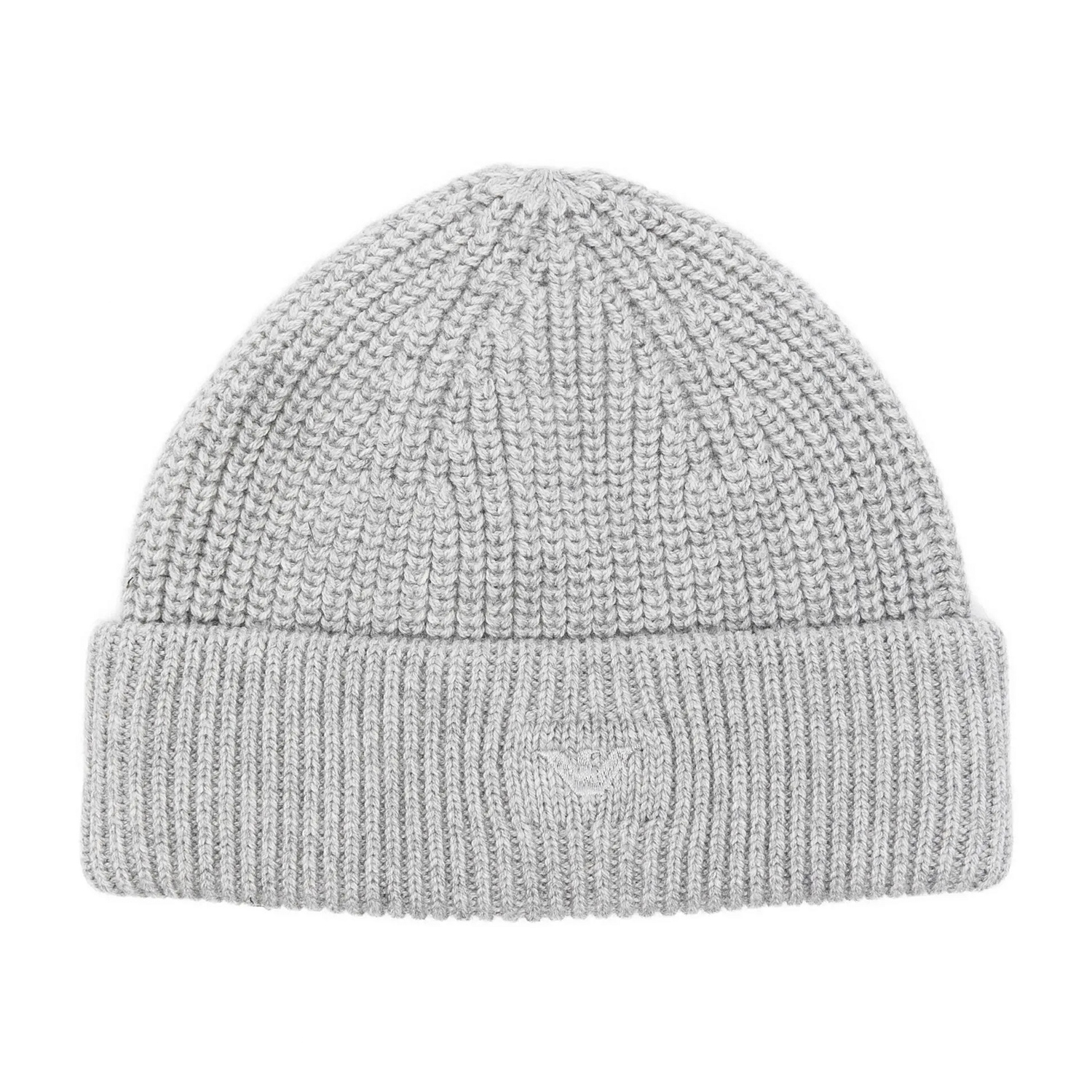 Emporio Armani γκρι πλεκτό σκουφί κατασκευασμένο από μαλλί και βαμβάκι, με tone-to-tone κεντημένο λογότυπο.