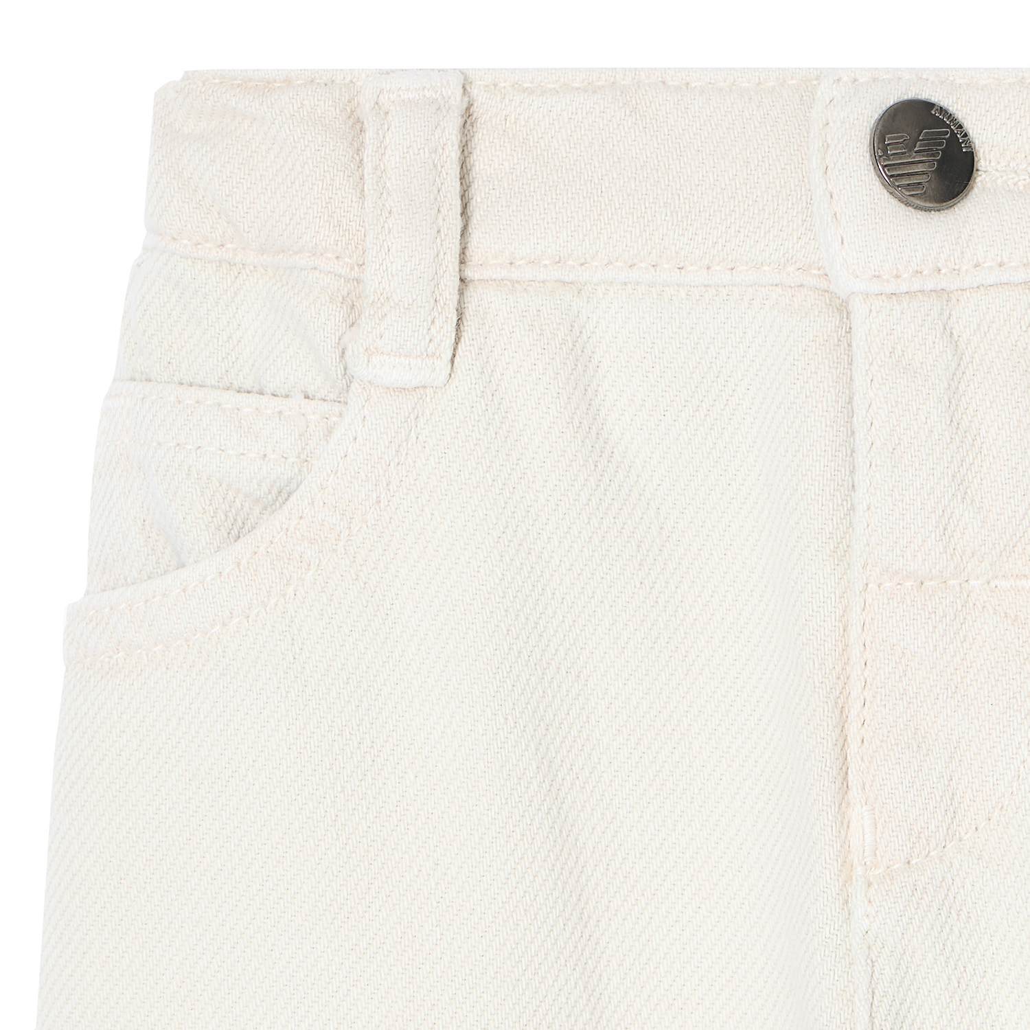 Emporio Armani κρεμ-μπεζ βαμβακερό παντελόνι με ελαστική μέση, ελαστικούς ρυθμιστές στο εσωτερικό και μεταλλικό λογότυπο στο πίσω μέρος.