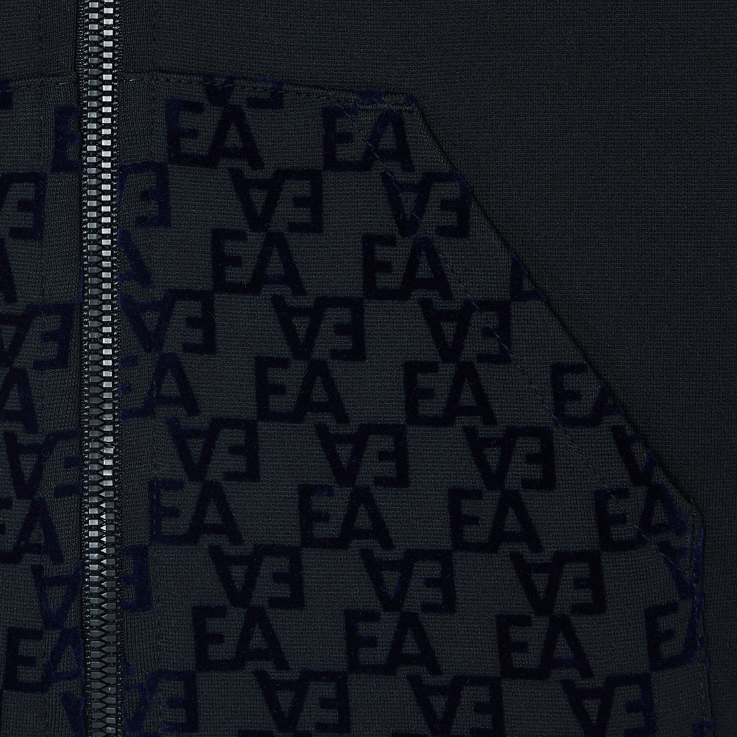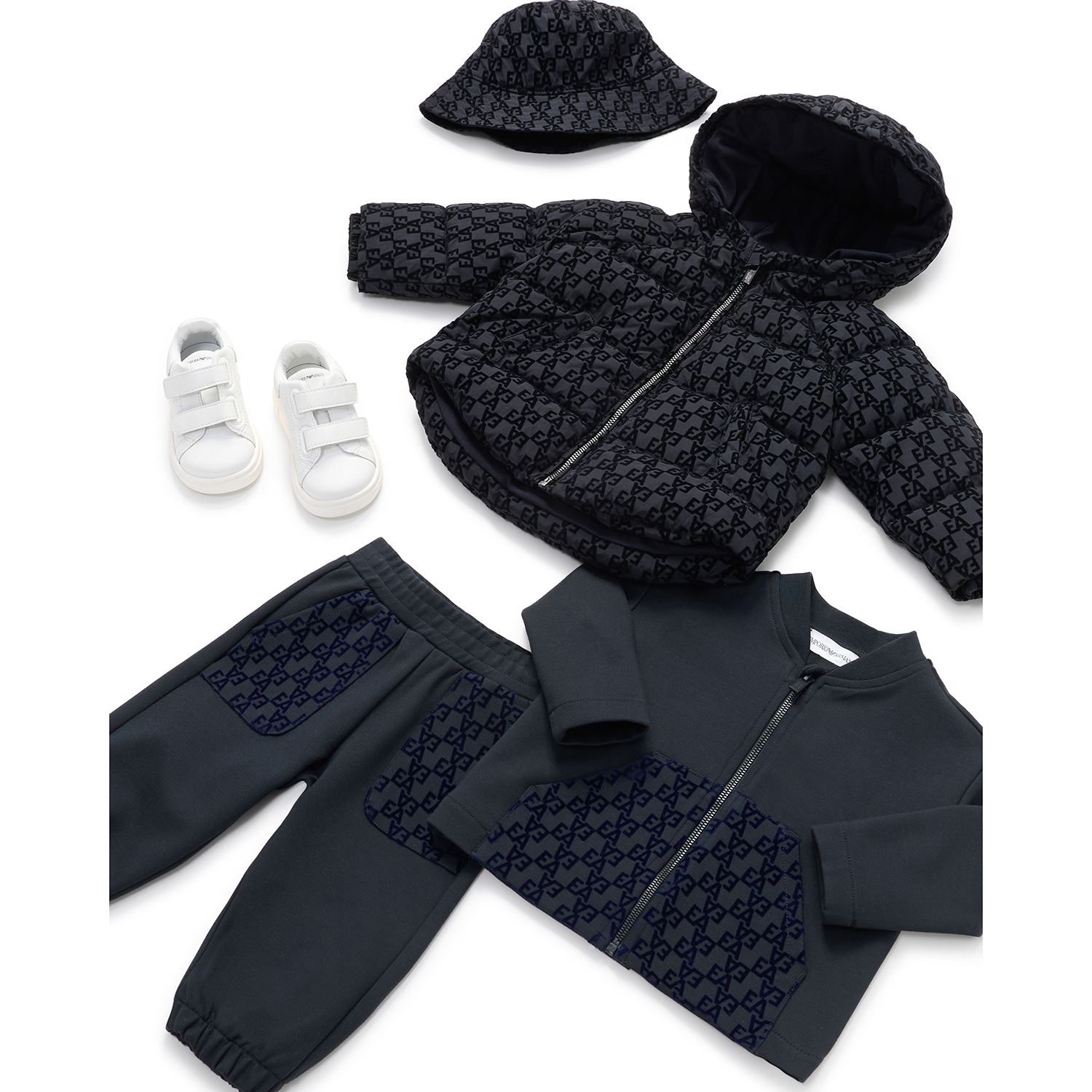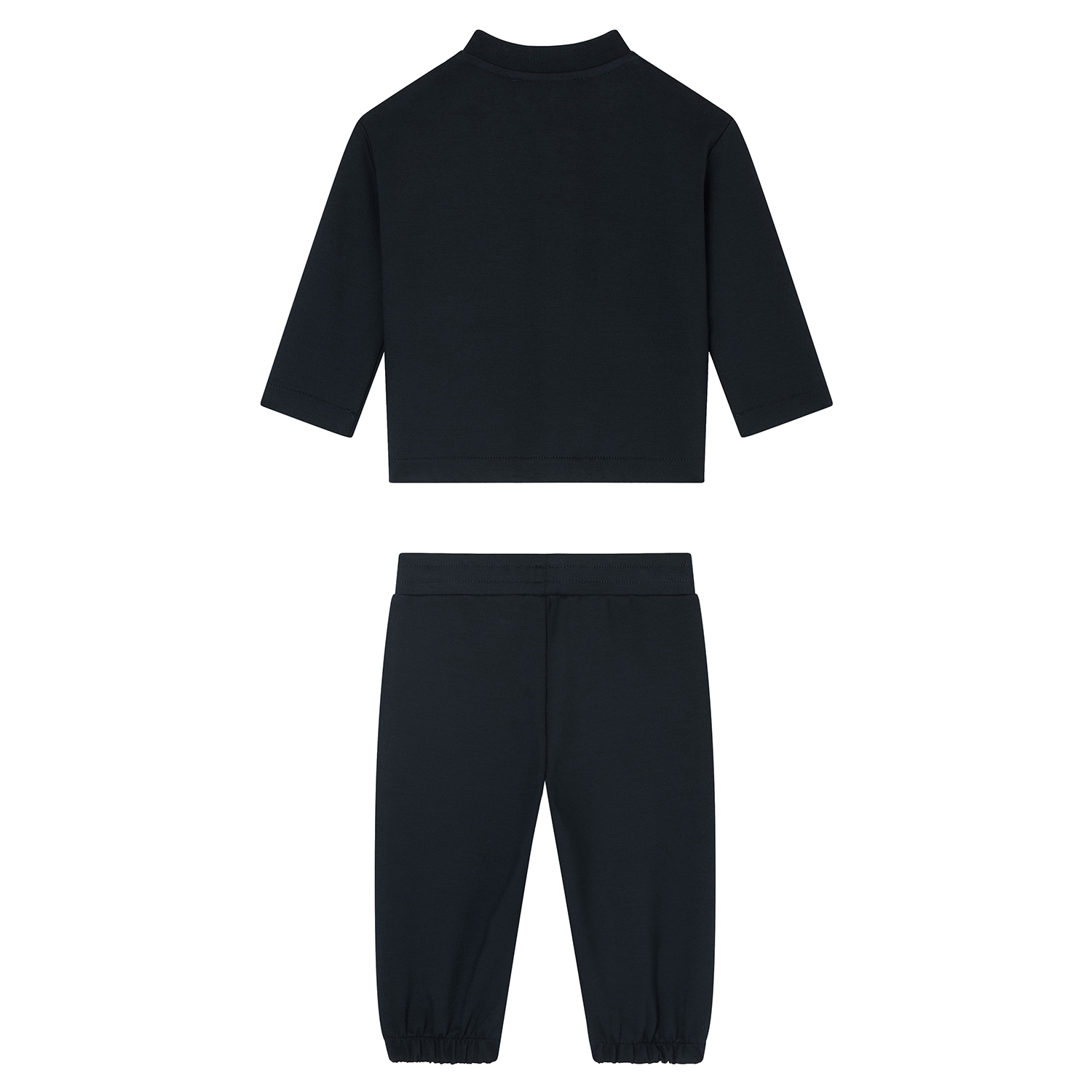 Emporio Armani σκούρη μπλε φόρμα από βισκόζη με βελούδινες λεπτομέρειες με μονόγραμμα και λογότυπο. Είναι πολύ απαλή και ελαστική.