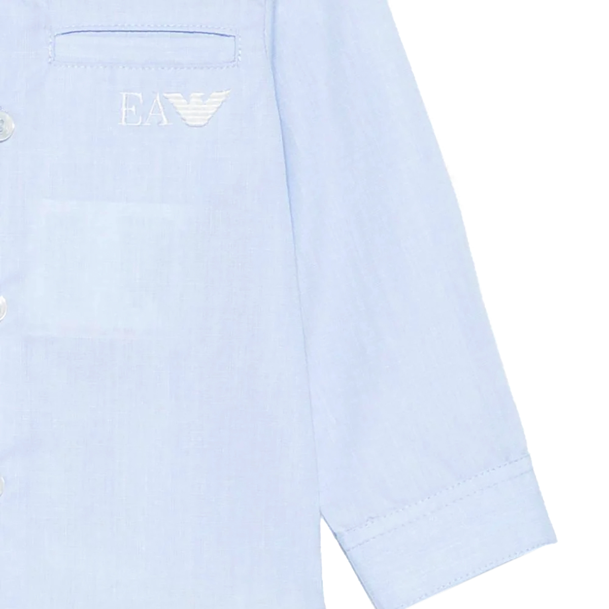 Emporio Armani γαλάζιο βαμβακερό πουκάμισο με τσέπη και κεντημένο λογότυπο στο στήθος.