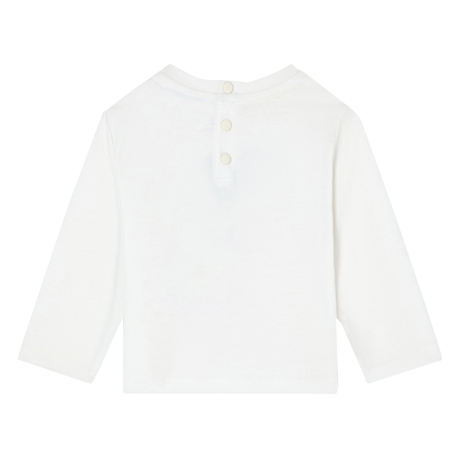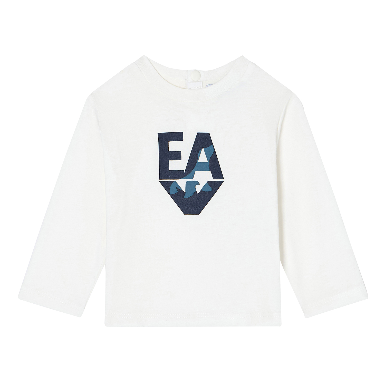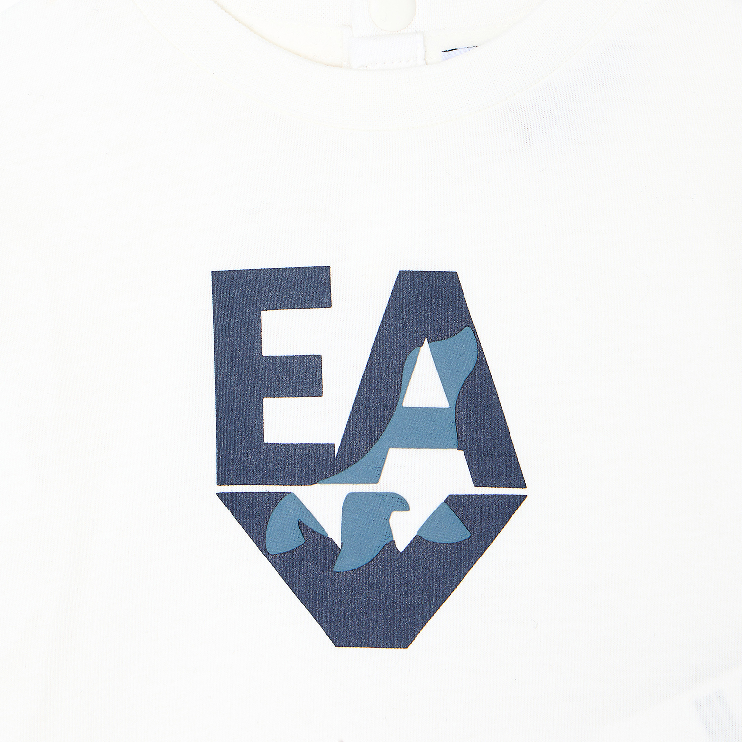 Emporio Armani υπόλευκη μπλούζα από οργανικό βαμβάκι με τυπωμένο το λογότυπο EA μπροστά και κουμπιά σούστα στο πίσω μέρος.