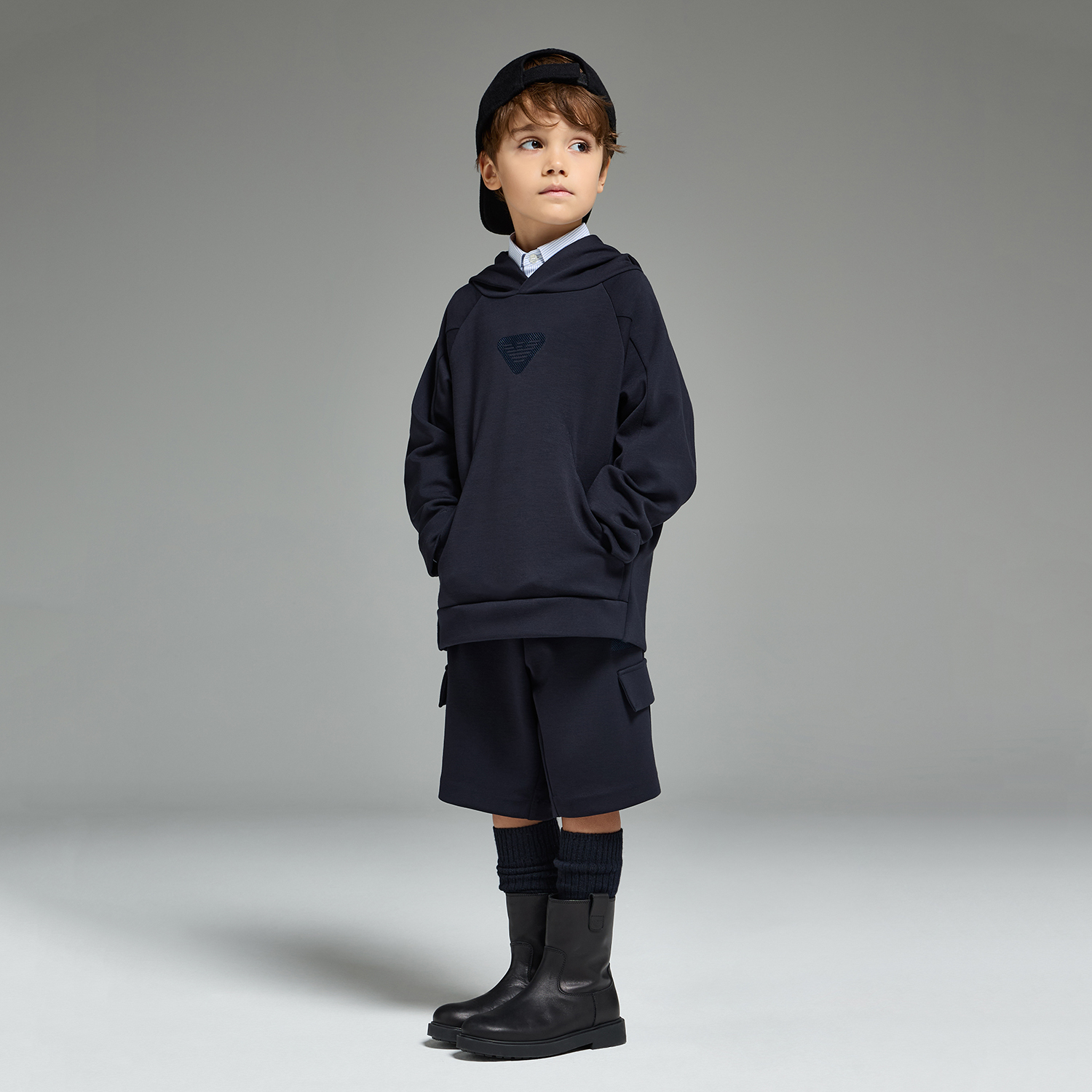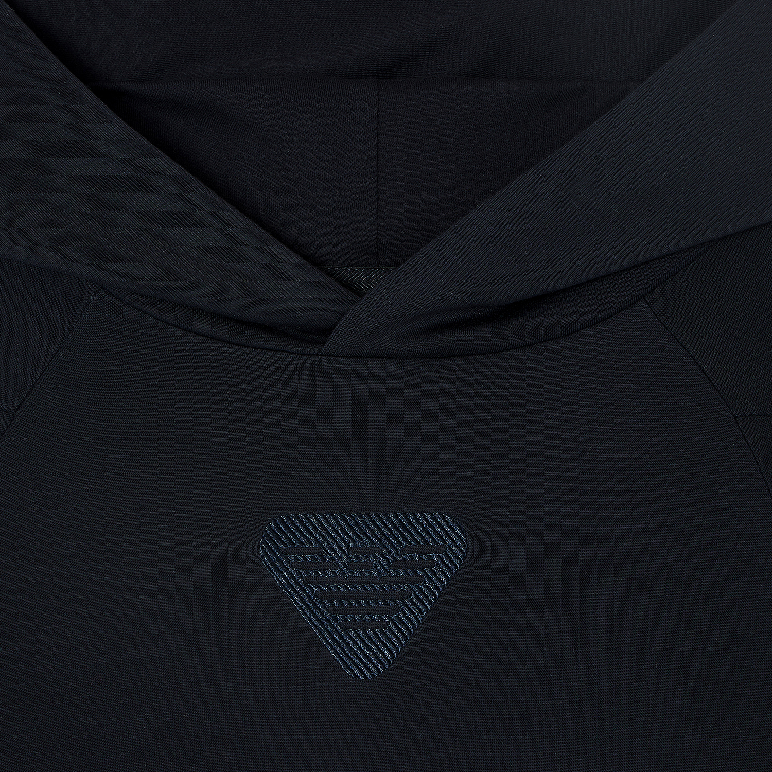 Emporio Armani σκούρο μπλε φούτερ με κουκούλα, εξαιρετικά απαλό και ελαστικό, με κεντημένο λογότυπο στο στήθος.