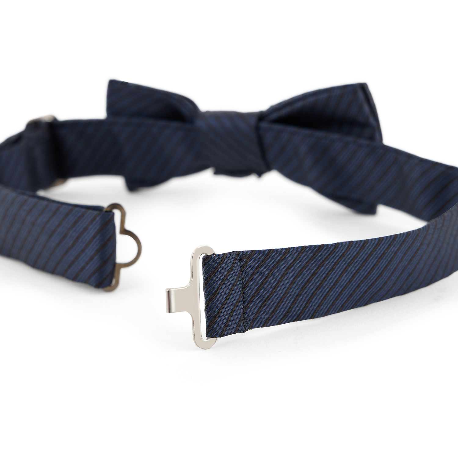 Emporio Armani σκούρο μπλε 100% μεταξωτό παπιγίόν με tone-to-tone διακριτικό ριγέ.