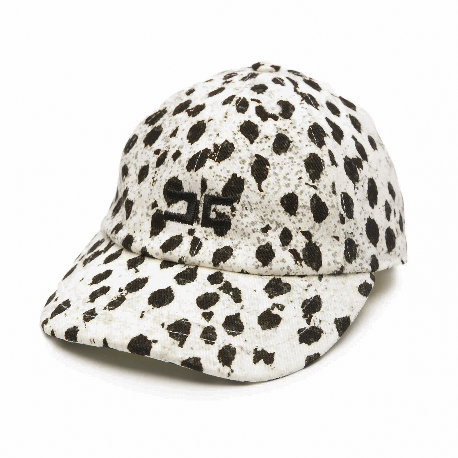 Elisabetta Franchi υπόλευκο βαμβακερό τζόκεϊ καπέλο με σχέδιο animal print σε μαύρο χρώμα και λογότυπο.
