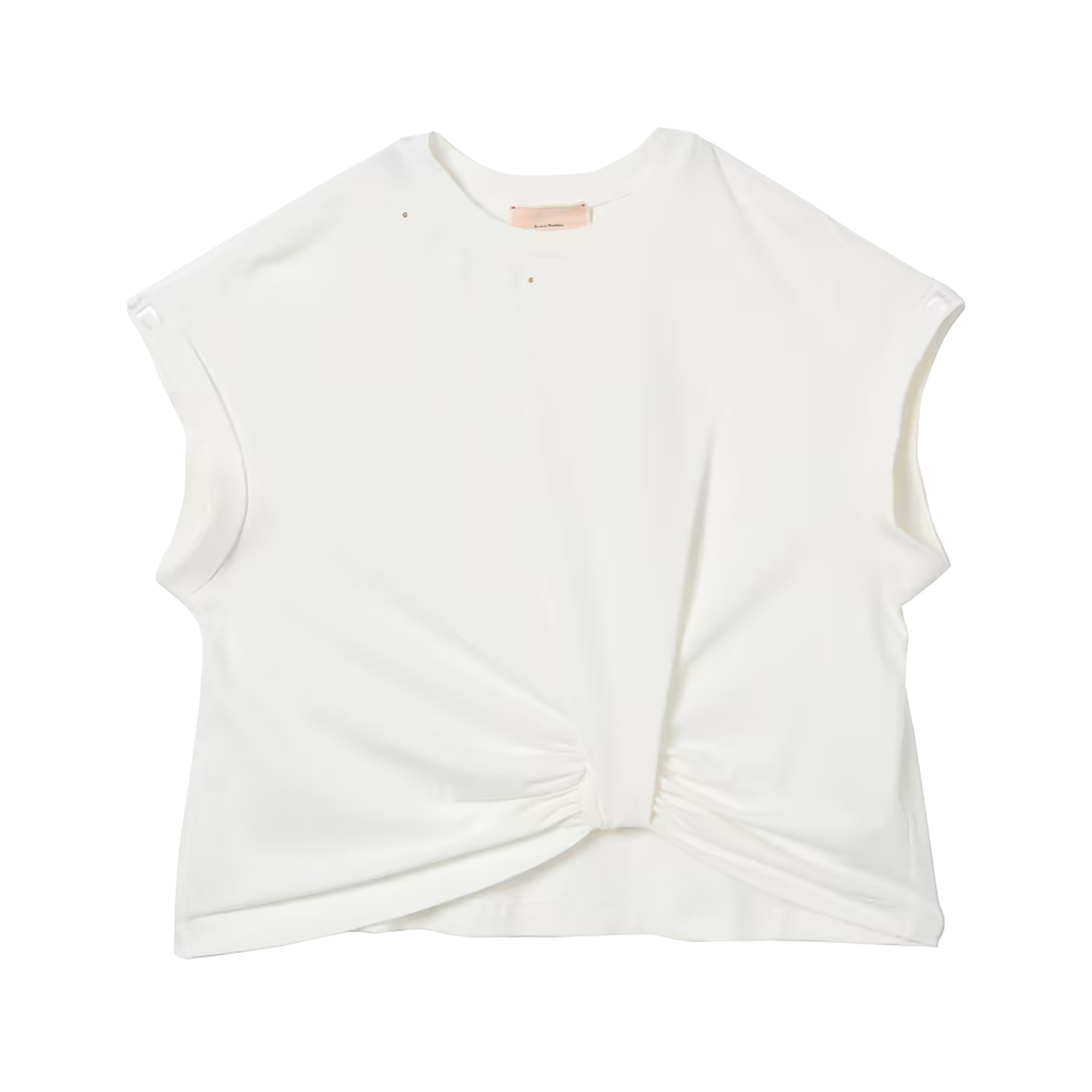 Elisabetta Franchi υπόλευκή αμάνικη μπλούζα από οργανικό βαμβάκι, με ντραπέ στυλ και διακριτικό tone-to-tone λογότυπο στα μανίκια.