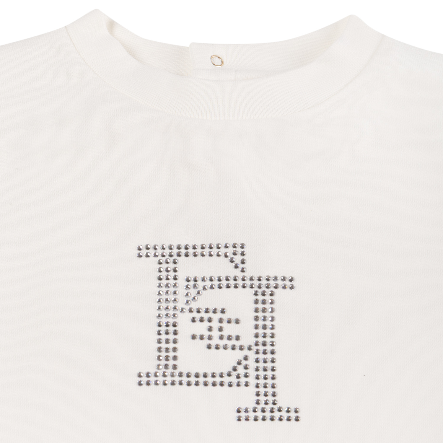 Elisabetta Franchi υπόλευκο βαμβακερό φούτερ με tone-to-tone στρασένιο λογότυπο και κλείσιμο με κουμπί σούστα στο πίσω μέρος.