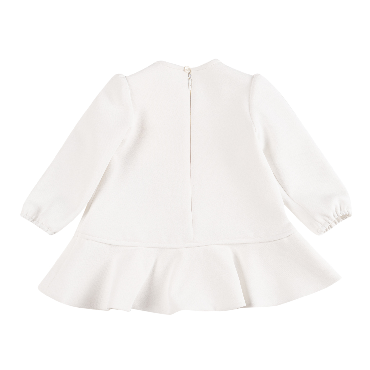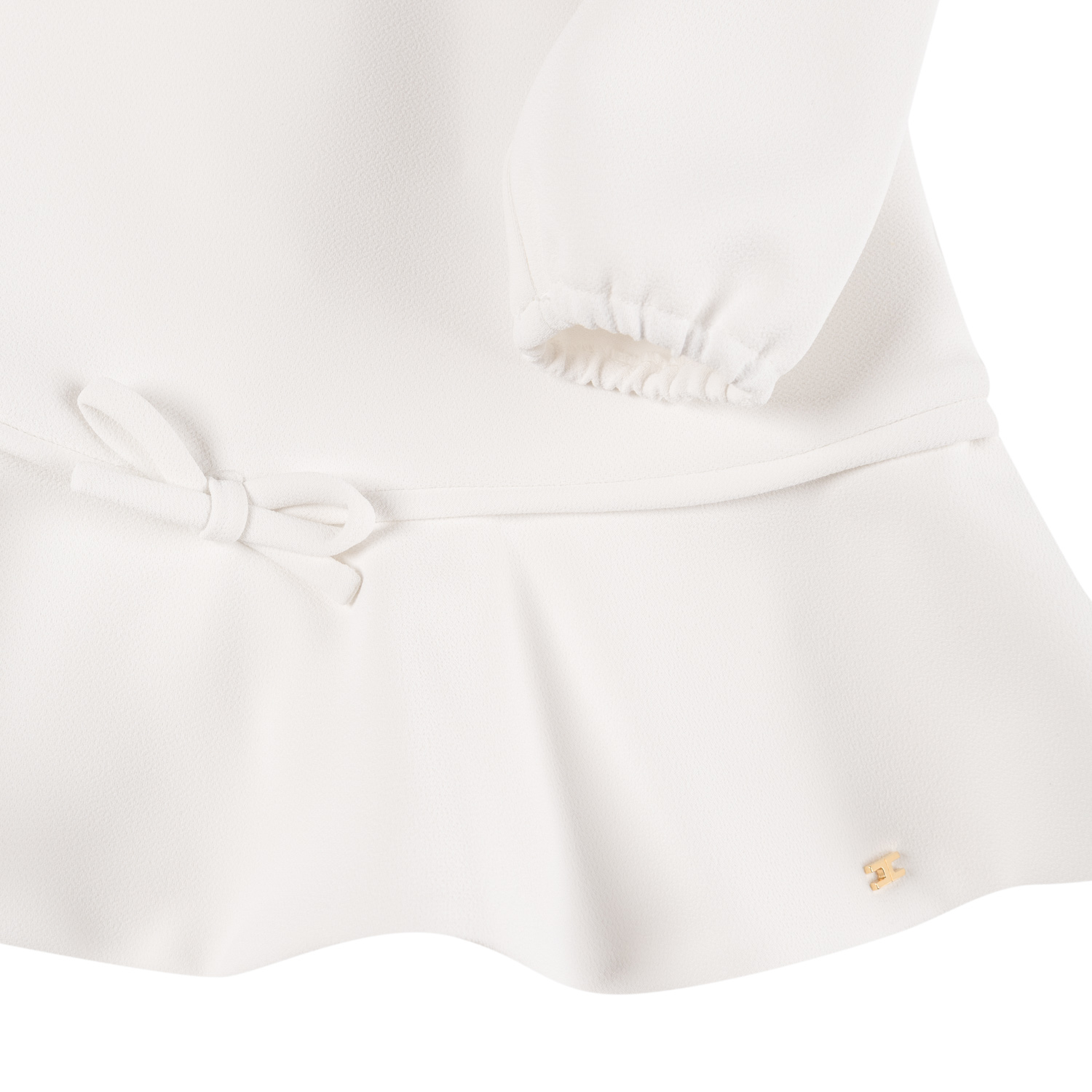 Elisabetta Franchi υπόλευκο κρεπ-σενίλ φορμάκι με λεπτομέρεια φιόγκου, ελαστικά μανίκια-μανσέτες και ένα ασορτί εσώρουχο.