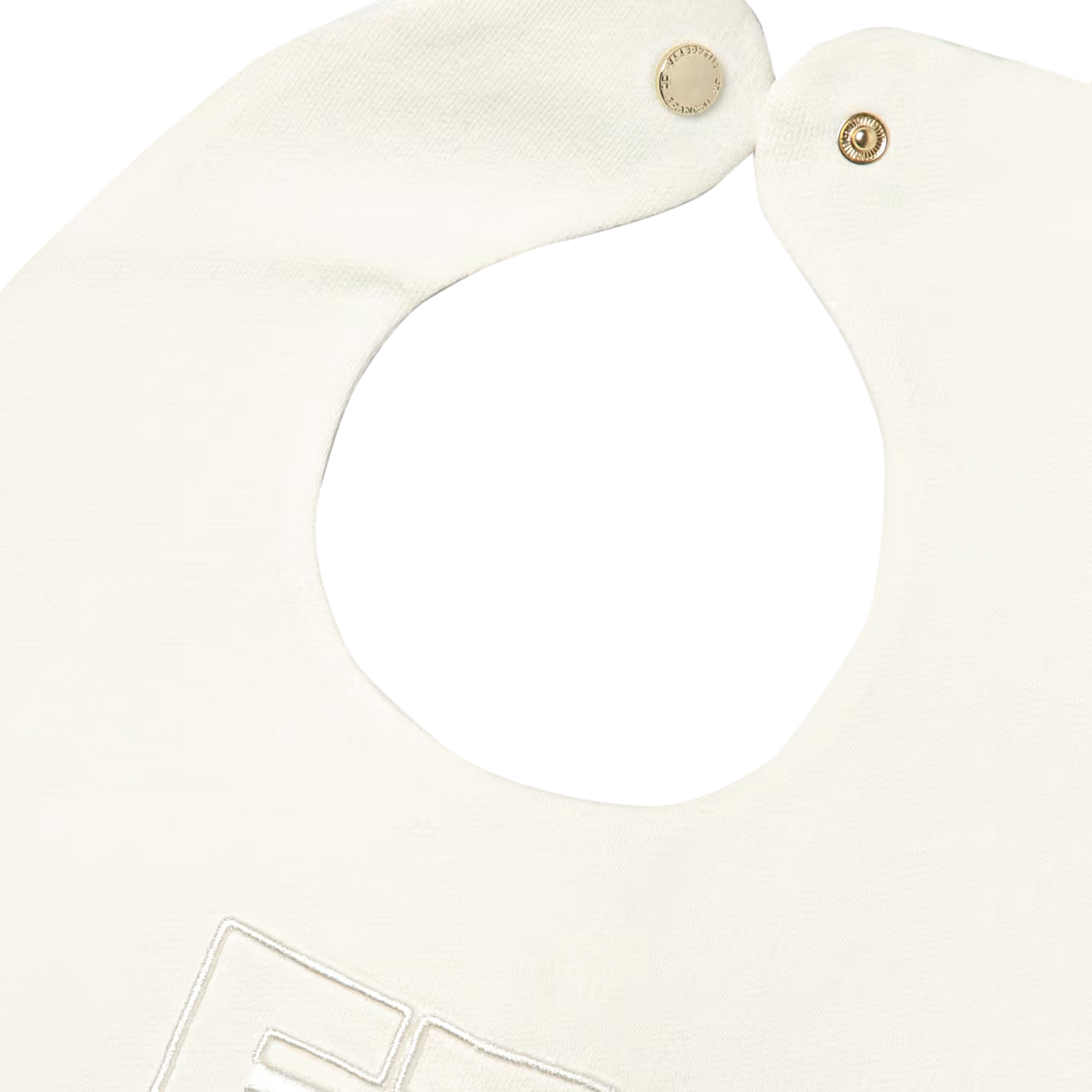 Elisabetta Franchi σαλιάρα σε υπόλευκο χρώμα με κεντημένο λογότυπο EF και κλείσιμο με κουμπί.