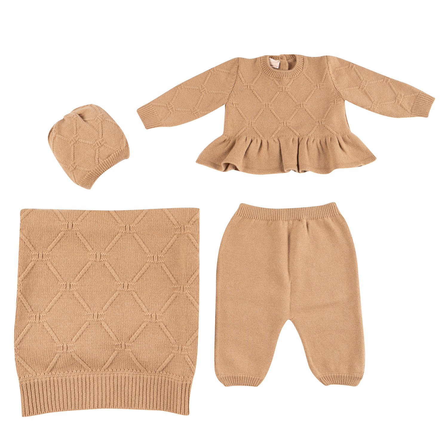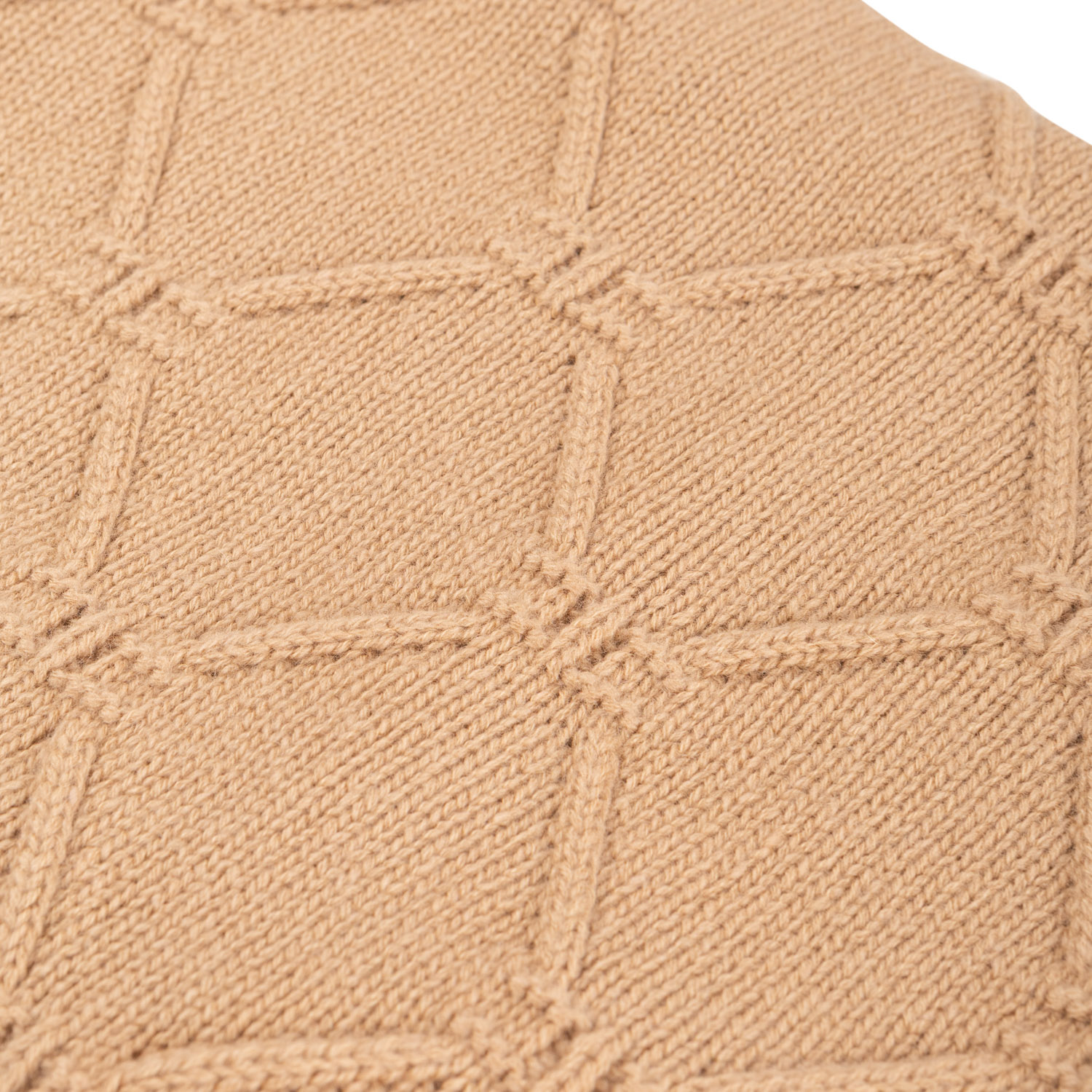 Elisabetta Franchi καφέ μάλλινη (merino) πλεκτή κουβέρτα με ανάγλυφα λογότυπα στην πλέξη.