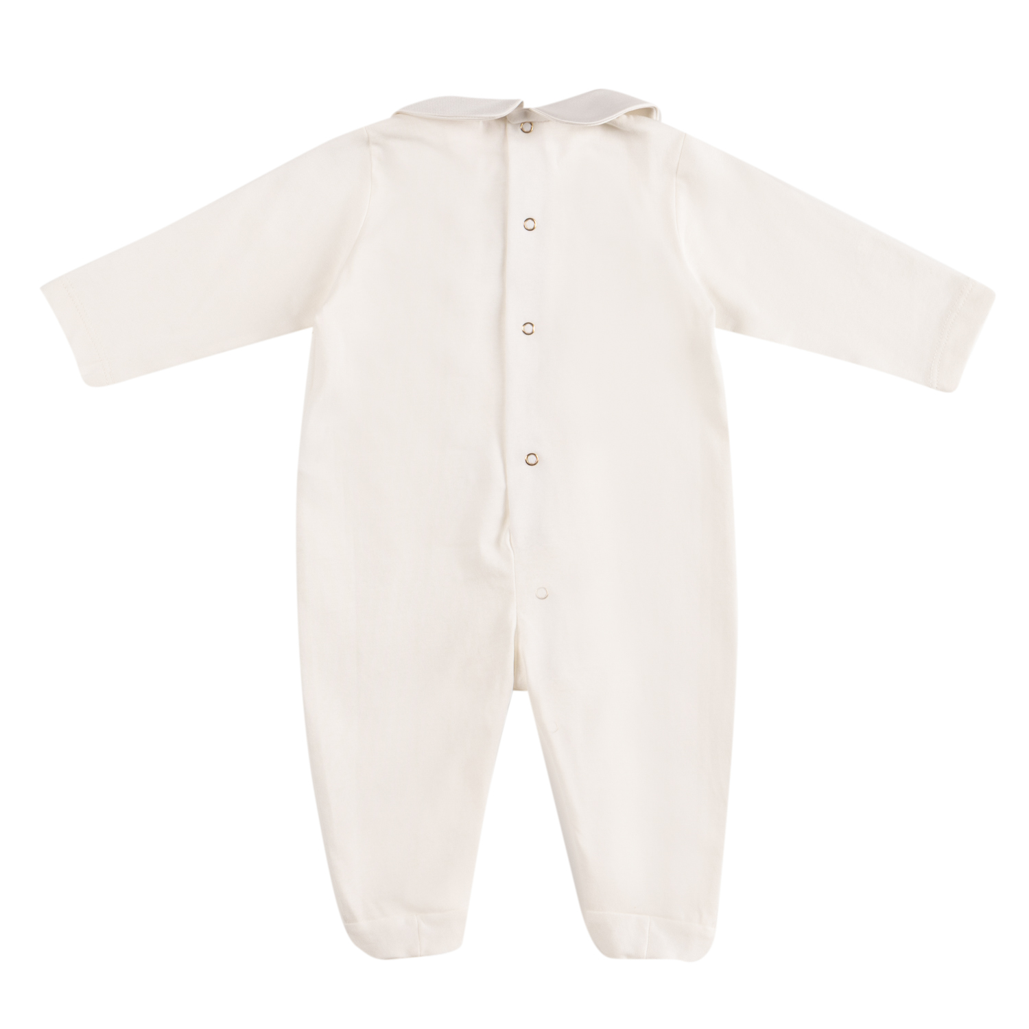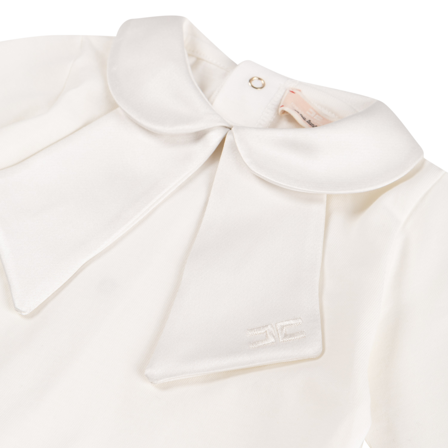 Elisabetta Franchi υπόλευκο βαμβακερό φορμάκι με σατέν γιακά και σχέδιο φιόγκου με ένα κεντητό λογότυπο. Διαθέτει κούμπωμα στην πλάτη.