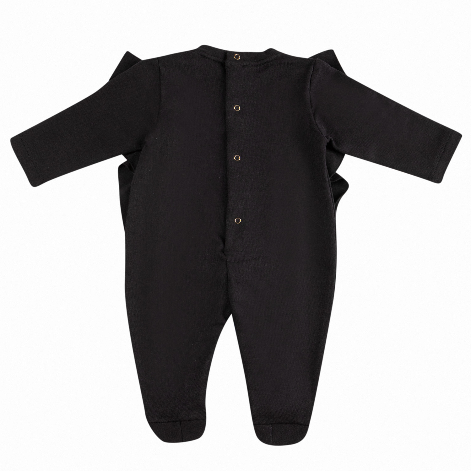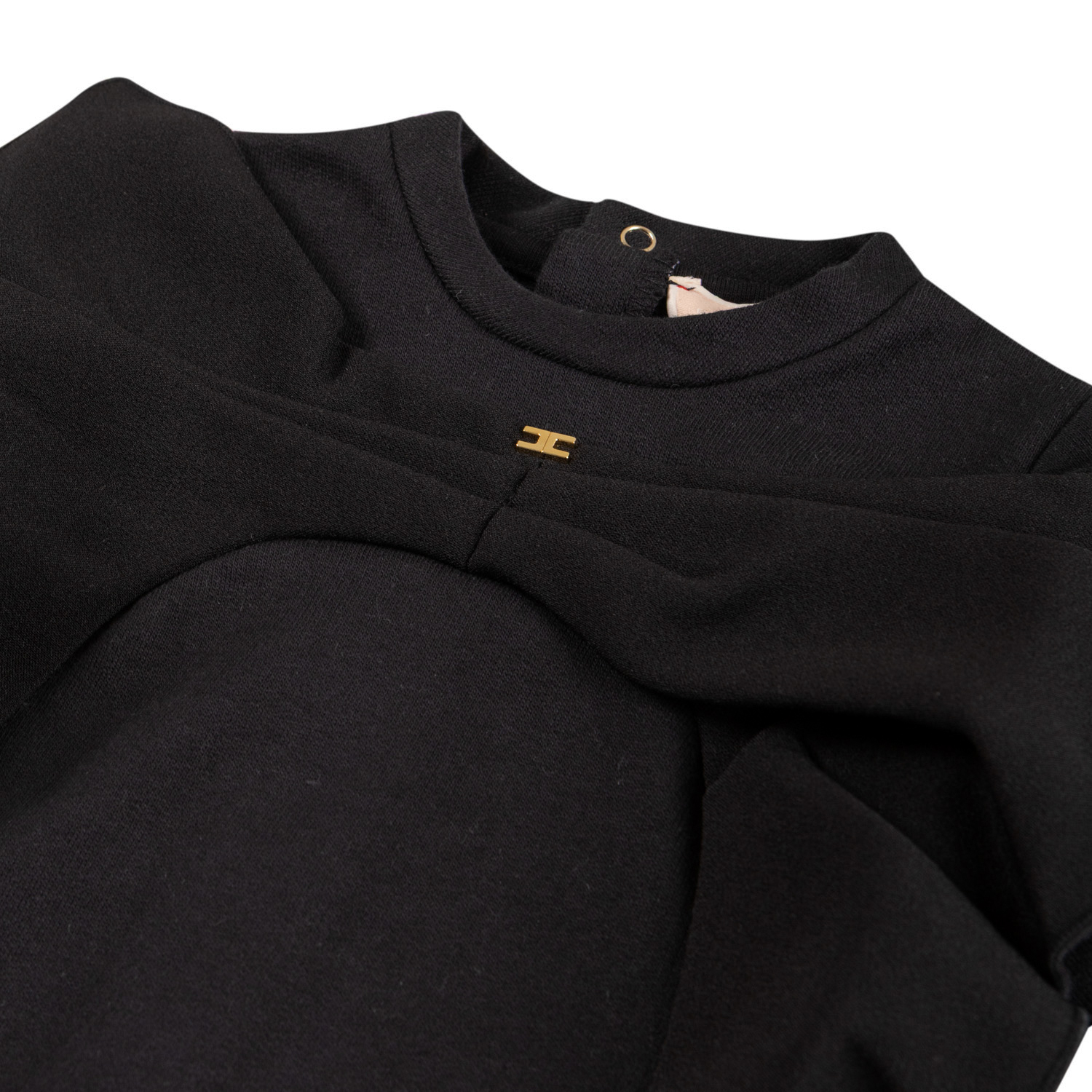 Elisabetta Franchi μαύρο βαμβακερό φορμάκι με 3D βολάν φιόγκο και κλείσιμο με κουμπιά στο πίσω μέρος.