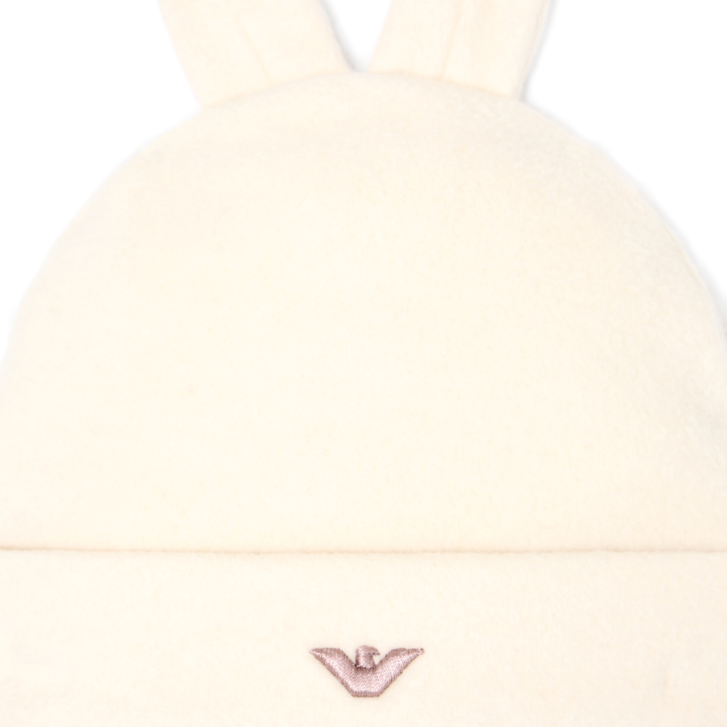 Emporio Armani ιβουάρ-κρεμ βαμβακερό σκουφί με εφαρμογές σε σχέδιο αυτιών. Διαθέτει κεντημένο λογότυπο αετού.