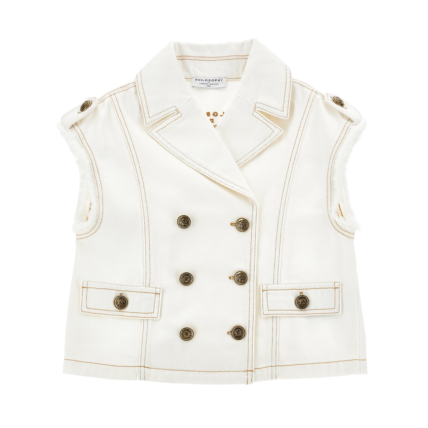 Philosophy di Lorenzo Serafini υπόλευκο βαμβακερό τζιν γιλέκο, με ξεφτισμένες άκρες και κεντημένο λογότυπο.