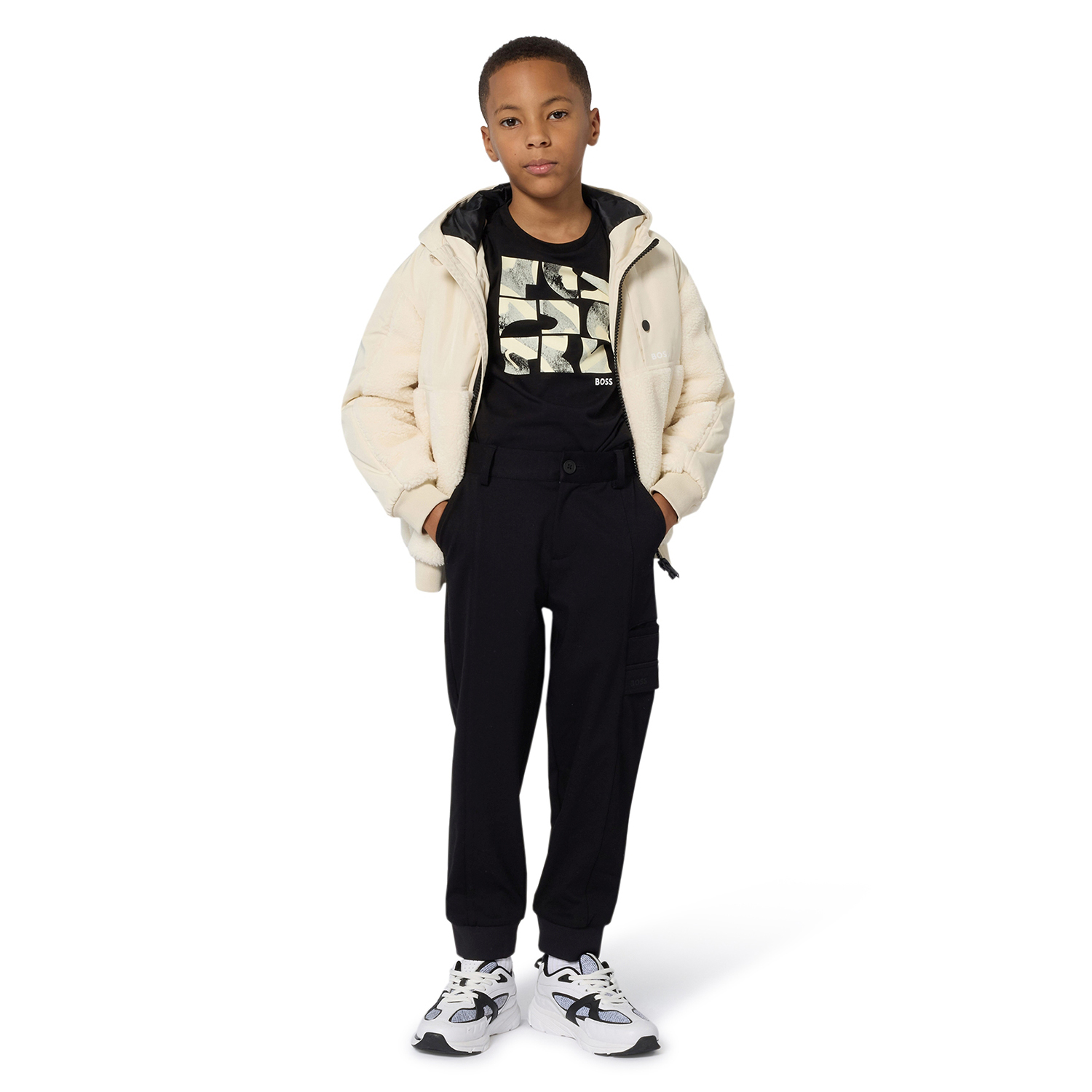 Hugo Boss μαύρο ελαστικό παντελόνι βισκόζης με ελαστικό τελείωμα, πλαϊνές τσέπες, θηλιές ζώνης και λάστιχο στους αστραγάλους.