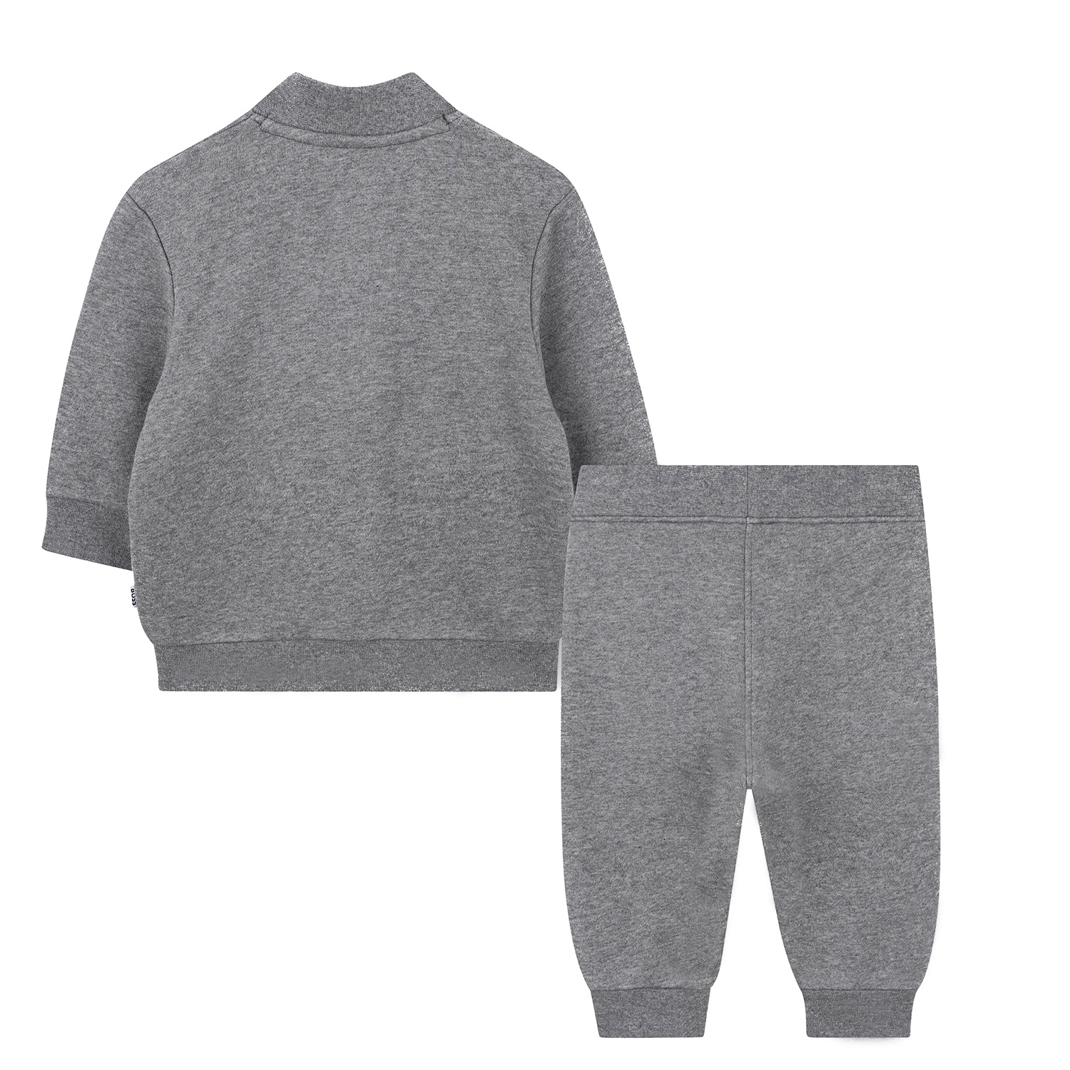 Hugo Boss σκούρο γκρι φούτερ σετ αποτελούμενο από ένα bomber μπουφάν και casual παντελόνι. Το μπουφάν διαθέτει τετράγωνες τσέπες, κλείσιμο με κουμπιά και κεντημένο μονόγραμμα στο ίδιο χρώμα.