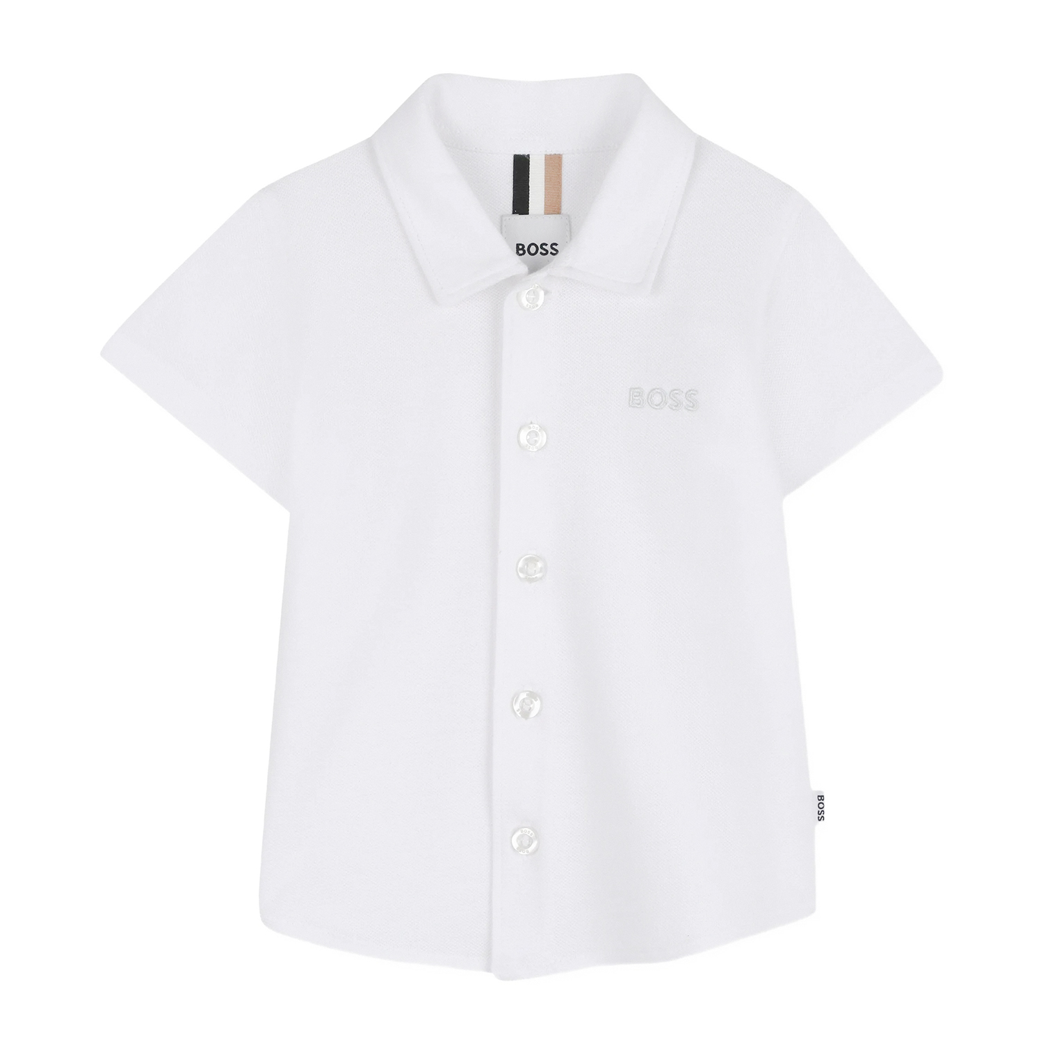 Hugo Boss λευκό βαμβακερό πικέ πουκάμισο με διακριτικό tone-to-tone κεντημένο λογότυπο.