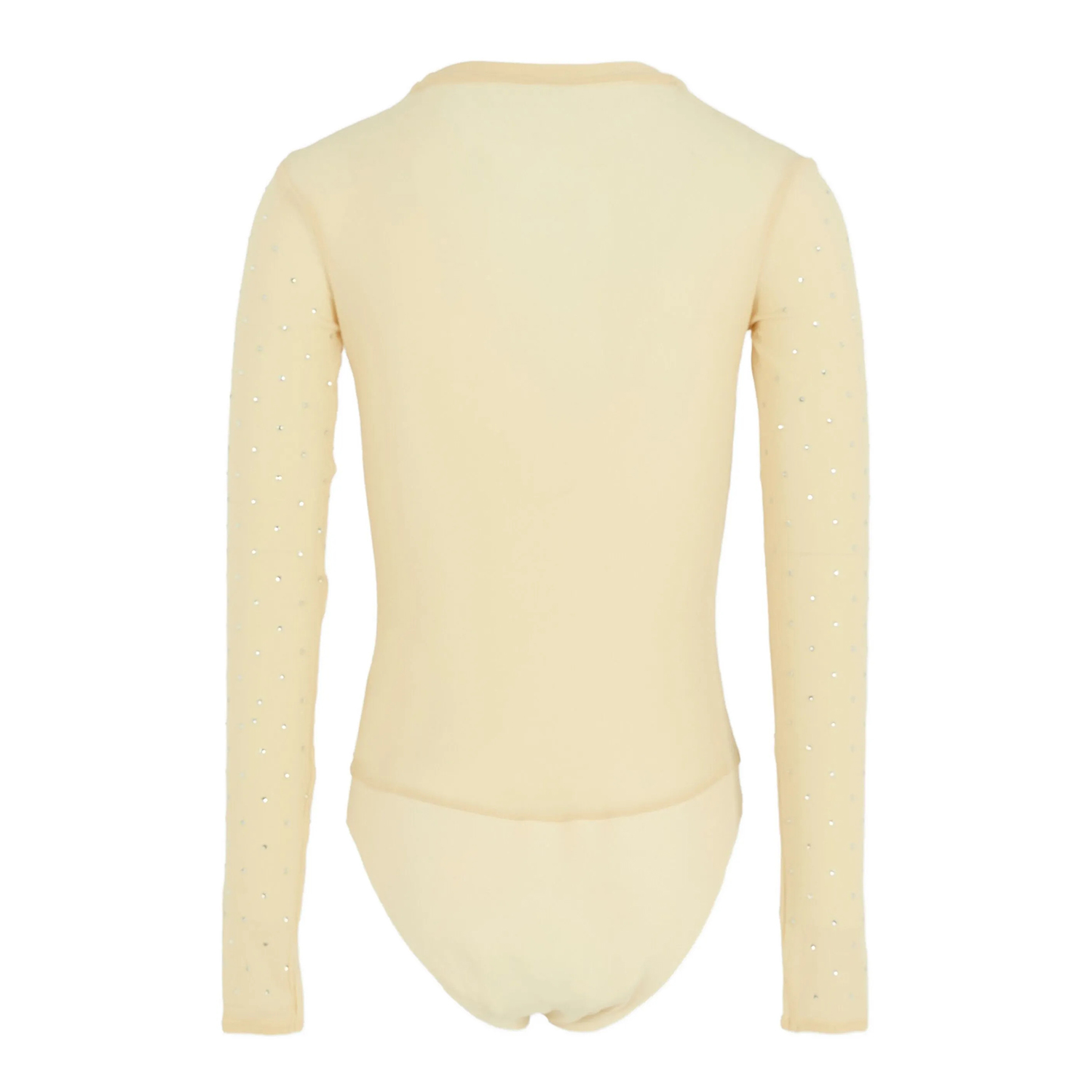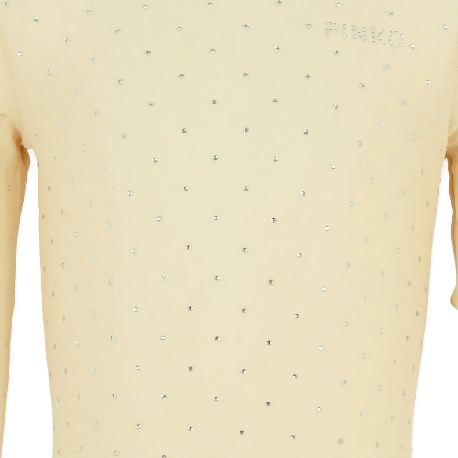 Pinko ιβουάρ τούλινο all-in-one body με εφαρμογές από στρας σε όλη την επιφάνεια και απαλό κάτω μέρος με κουμπιά.