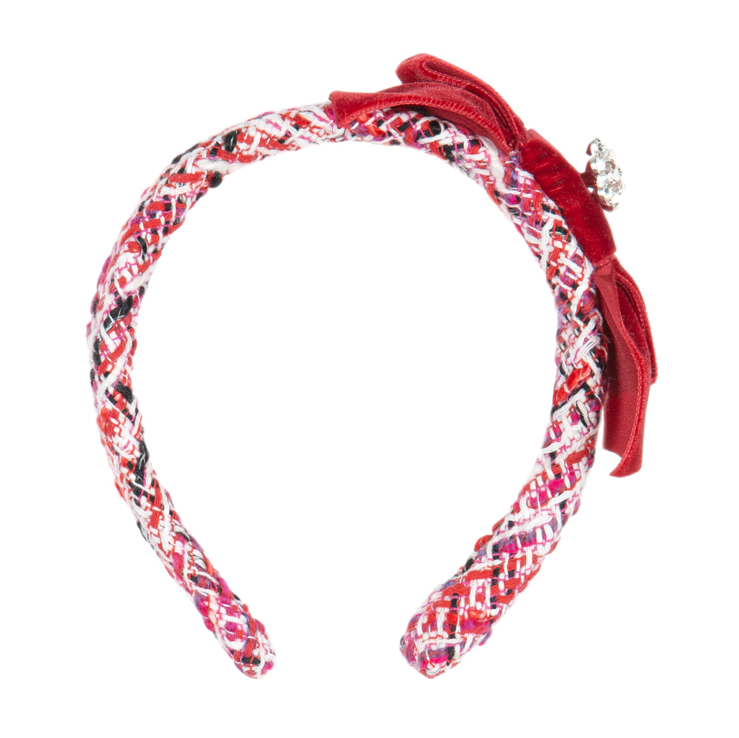 Patachou κόκκινη τουίντ στέκα μαλλιών με κόκκινο βελούδινο φιόγκο και εφαρμογή σε στυλ μαργαριταριού.