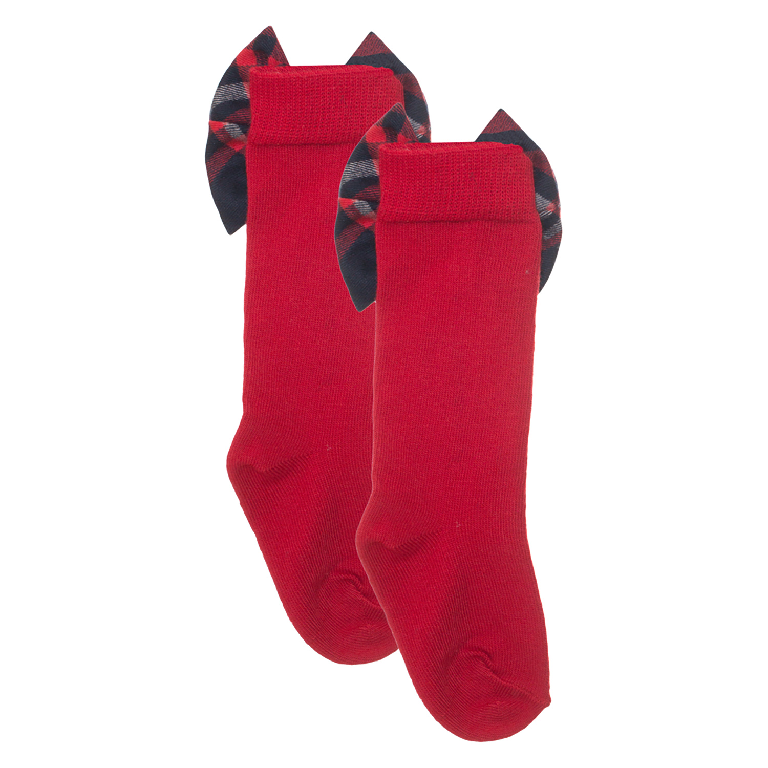 Patachou ημίμακρες κάλτσες από οργανικό βαμβάκι σε κόκκινο χρώμα με εφαρμογή καρό φιόγκου.