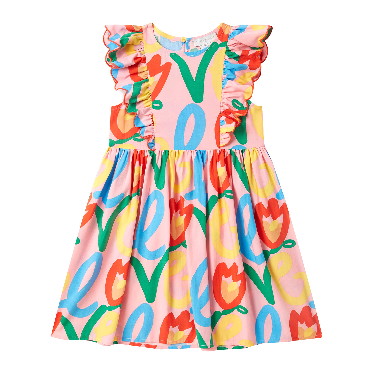 Stella McCartney απαλό φόρεμα βισκόζης με σχέδια βολάν και εμπριμέ σχέδια Love & Floral.