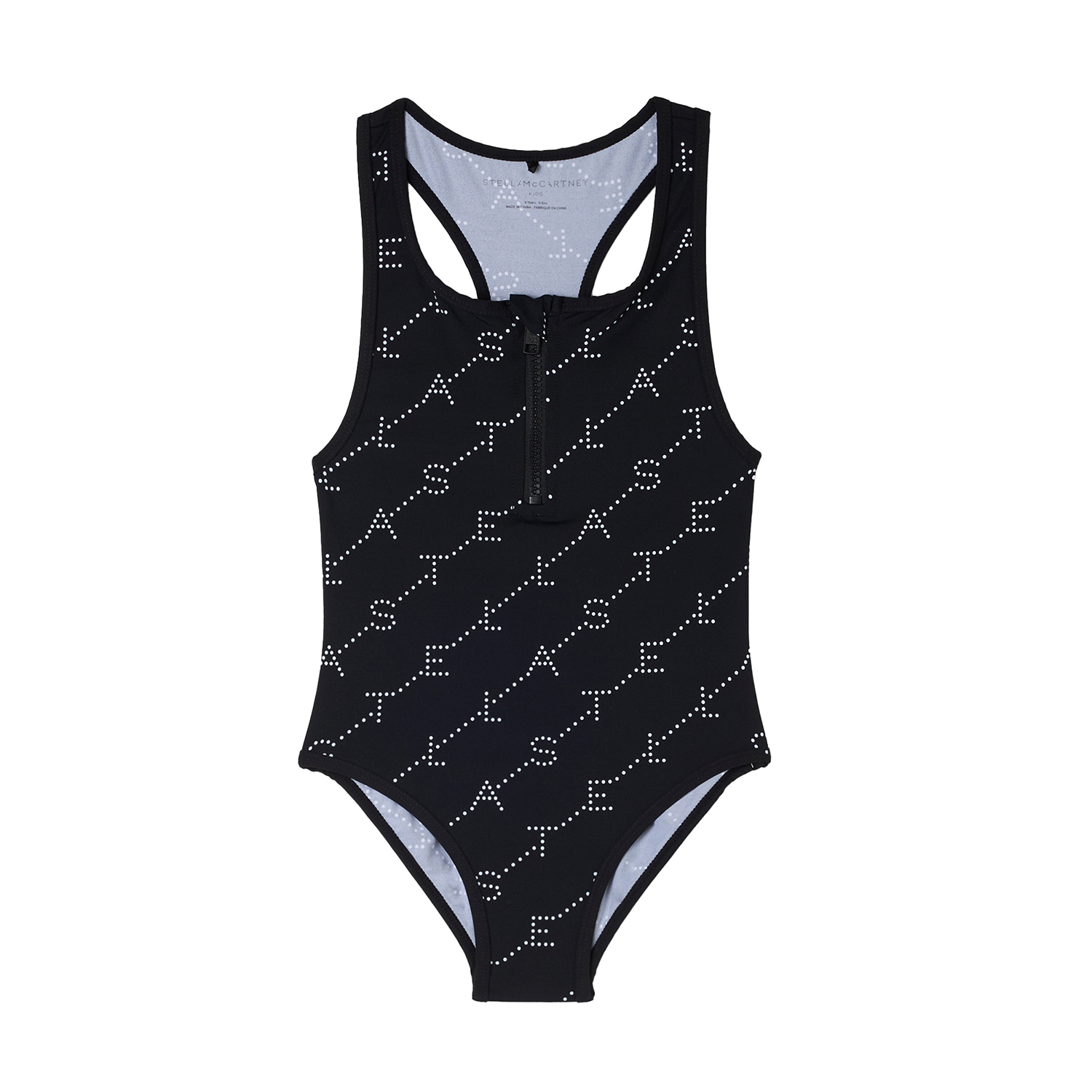 Stella McCartney μαύρο ολόσωμο μαγιό, με τυπωμένα λογότυπα και φερμουάρ.