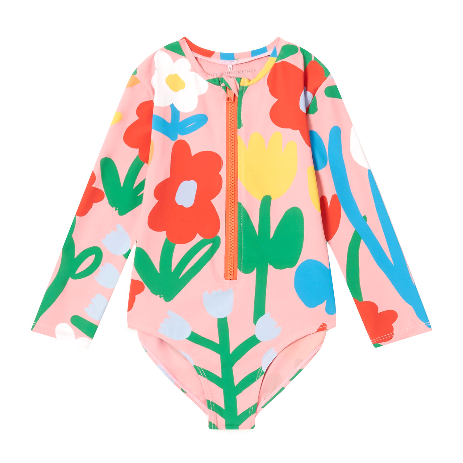 Stella McCartney ροζ ολόσωμο μαγιό με πολύχρωμα σχέδια και φερμουάρ μπροστά.