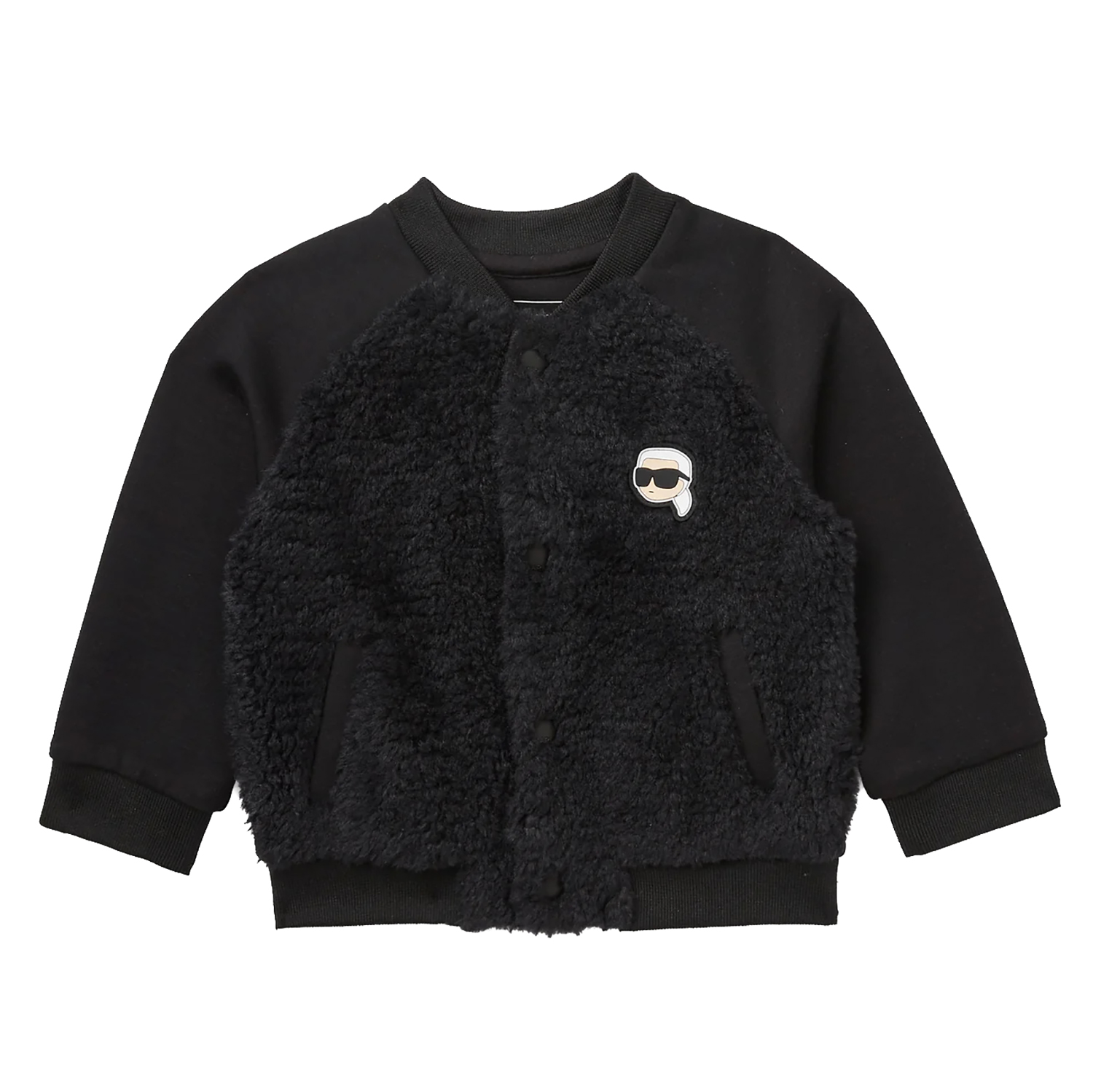 Karl Lagerfeld μαύρο βαμβακερό bomber μπουφάν με το μπροστινό μέρος από οικολογική γούνα και το πίσω μέρος με τυπωμένο λογότυπο. Έχει κούμπωμα με σούστες.