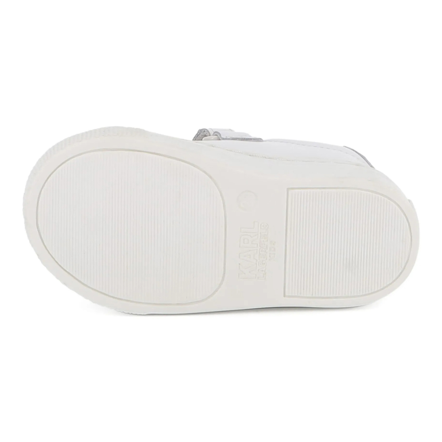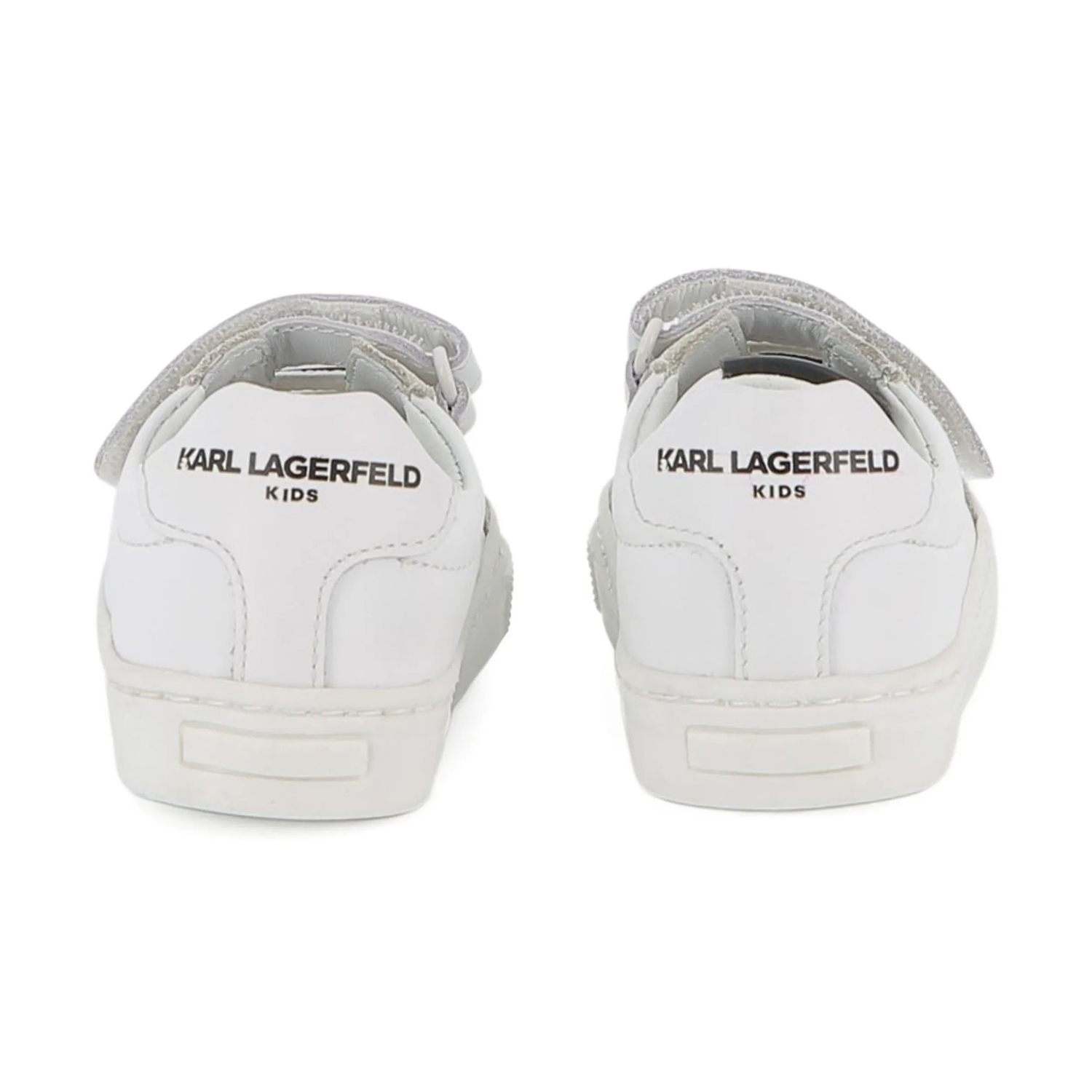 Karl Lagerfeld δερμάτινα sneakers σε υπόλευκο χρώμα με ταινία velcro και φιγούρα σιλικόνης Karl.
