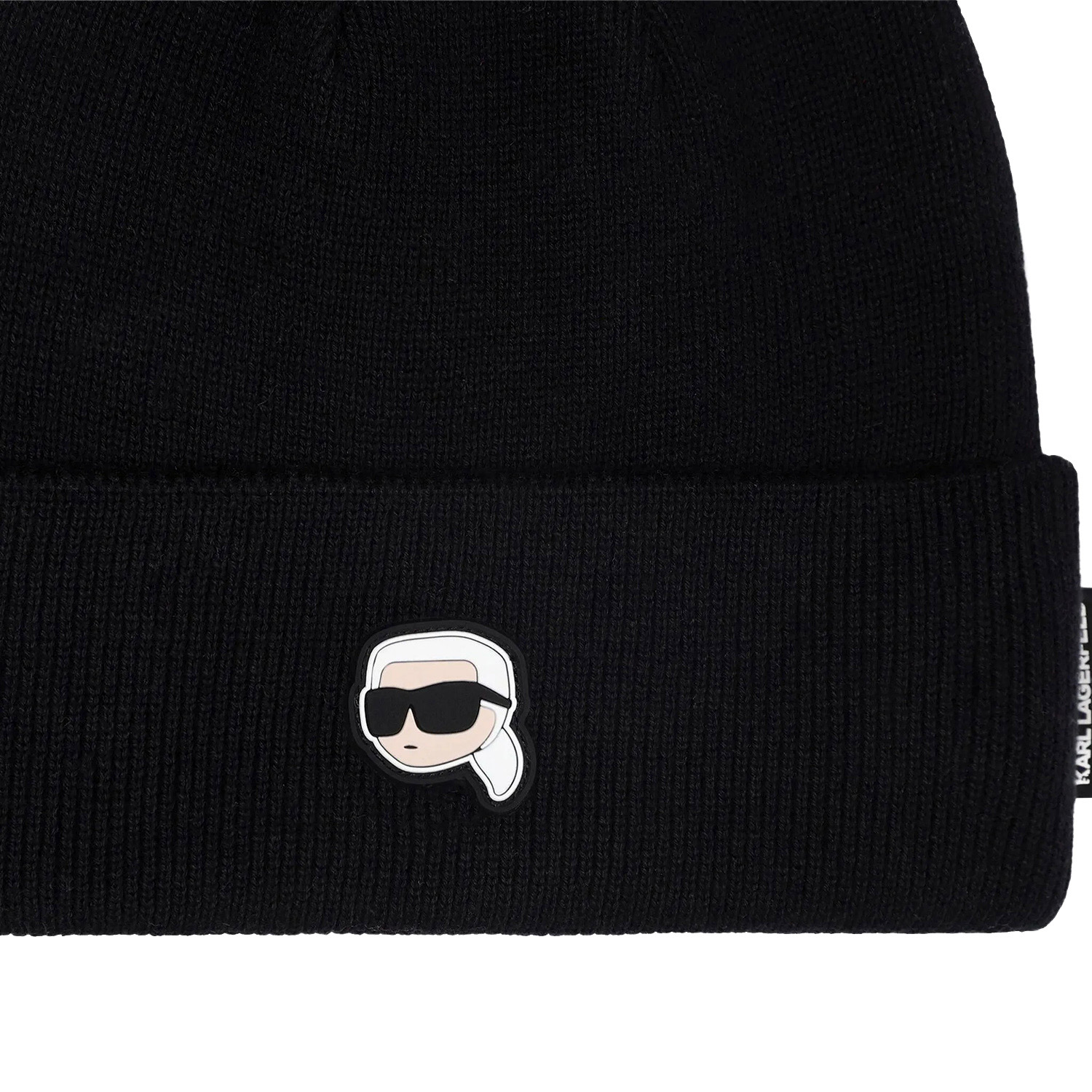 Karl Lagerfeld μαύρο βαμβακερό πλεκτό σκουφί με φιγούρα σιλικόνης Karl.