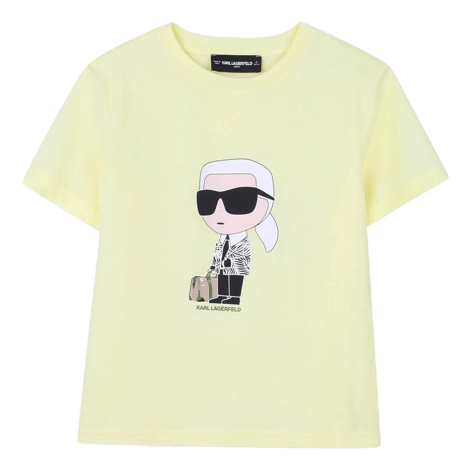 Karl Lagerfeld μπλούζα από οργανικό βαμβάκι σε χρώμα lime, με στάμπα φιγούρας μπροστά.