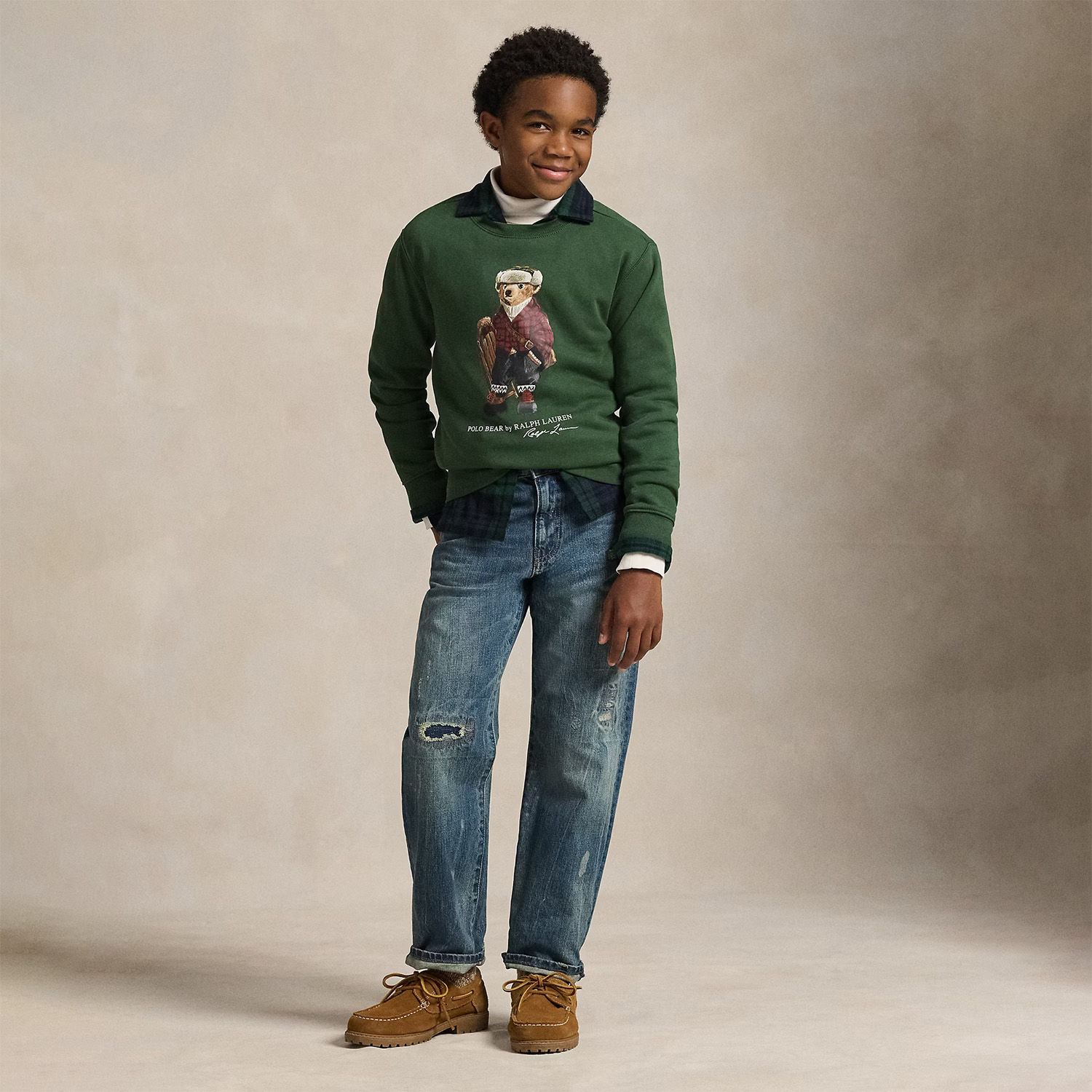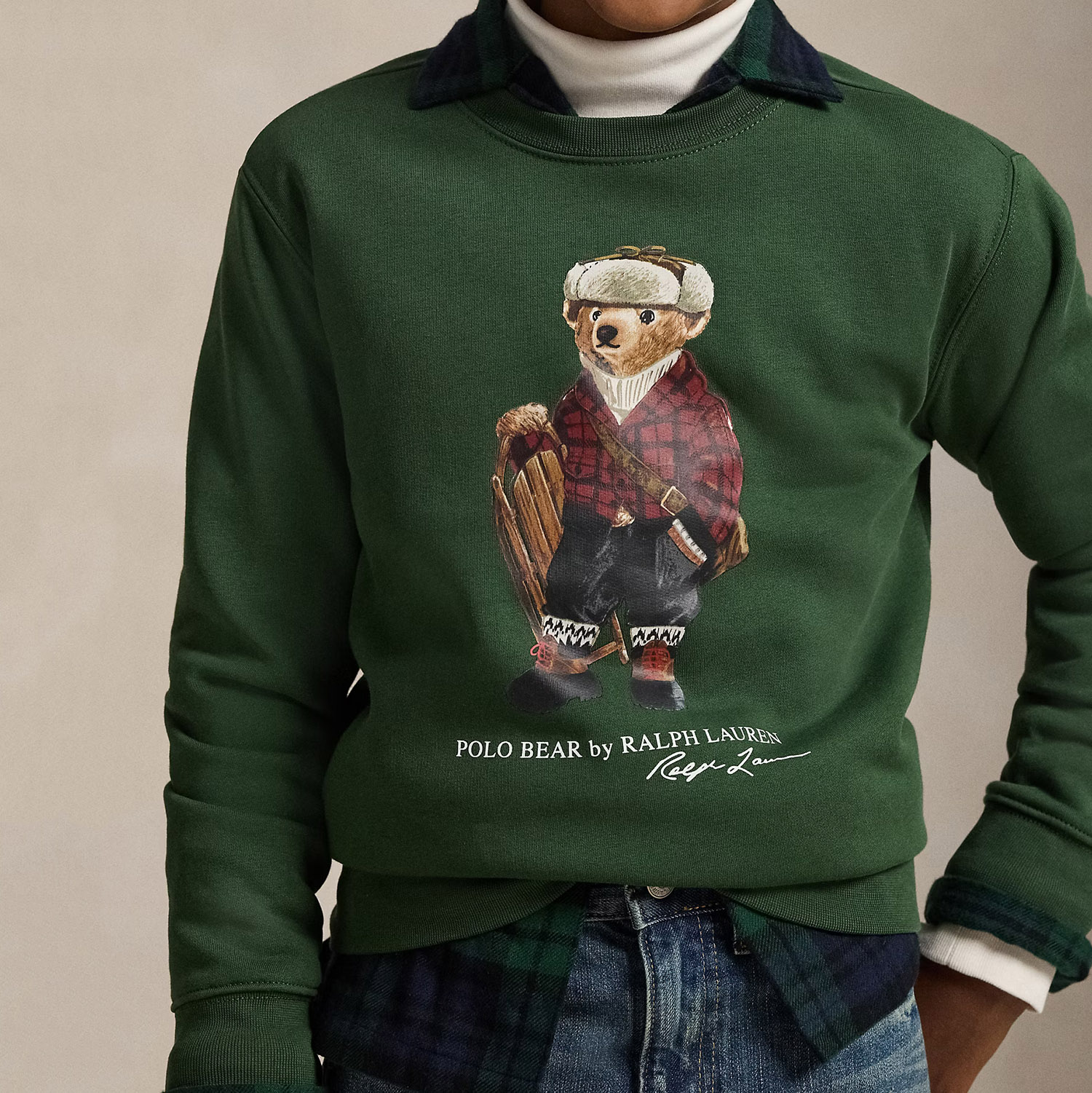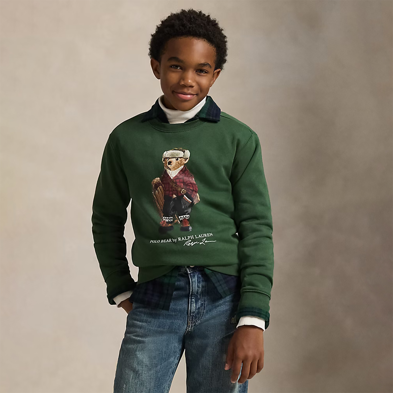 Polo Ralph Lauren dark green organic cotton sweatshirt with fleece inner part and a Teddy figure in front.
