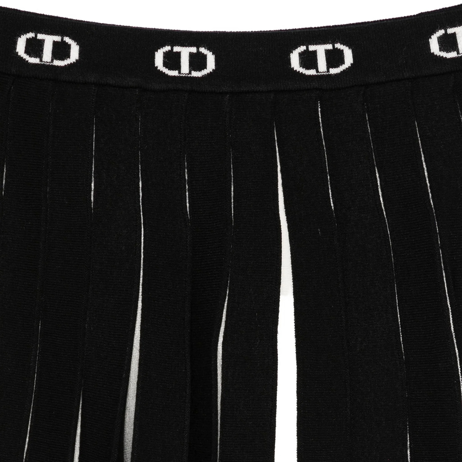 Twinset black/off-white knitted viscose skirt with logo details on the waist and pleated style.
