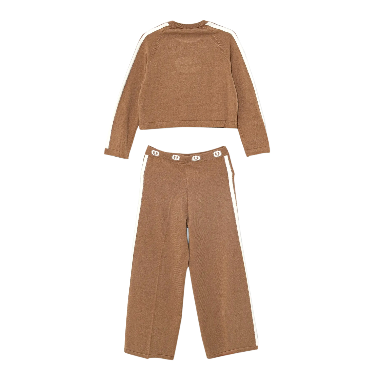 Twinset knitted viscose set in black color. It features off-white mohair details and a rhinestile logo.