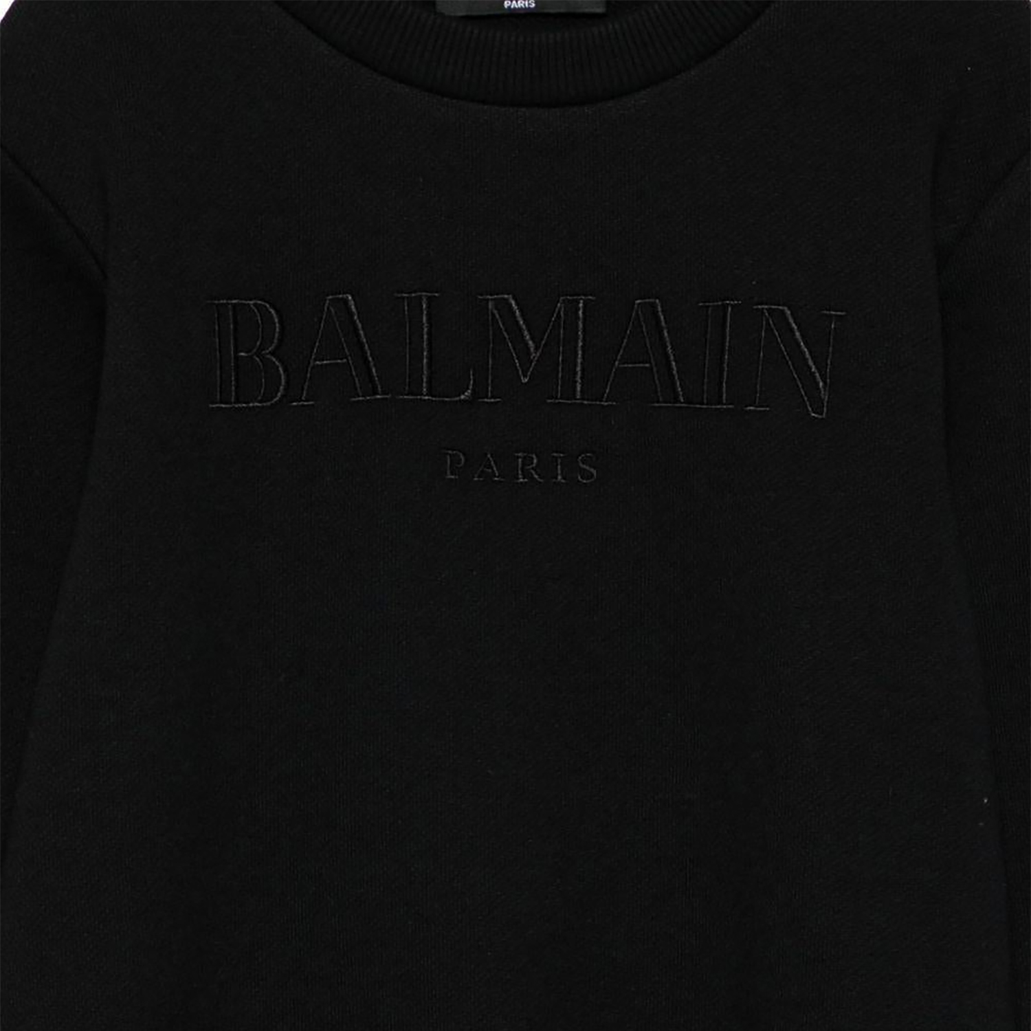 Balmain Paris black cotton sweatshirt featuring tone-to-tone embroidered logo.