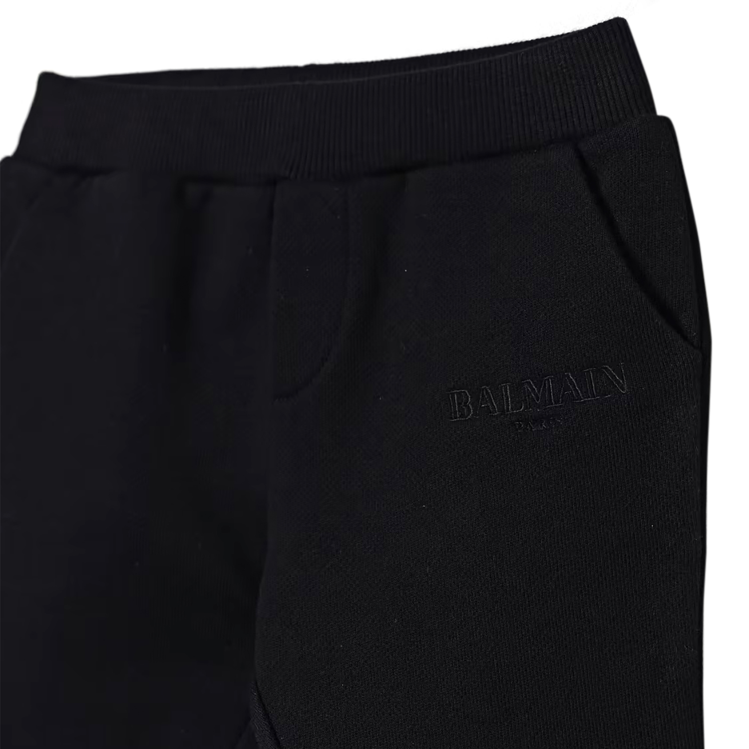 Balmain Paris black cotton jersey jogging trousers with a tone-to-tone embroidered logo and sewn revert.