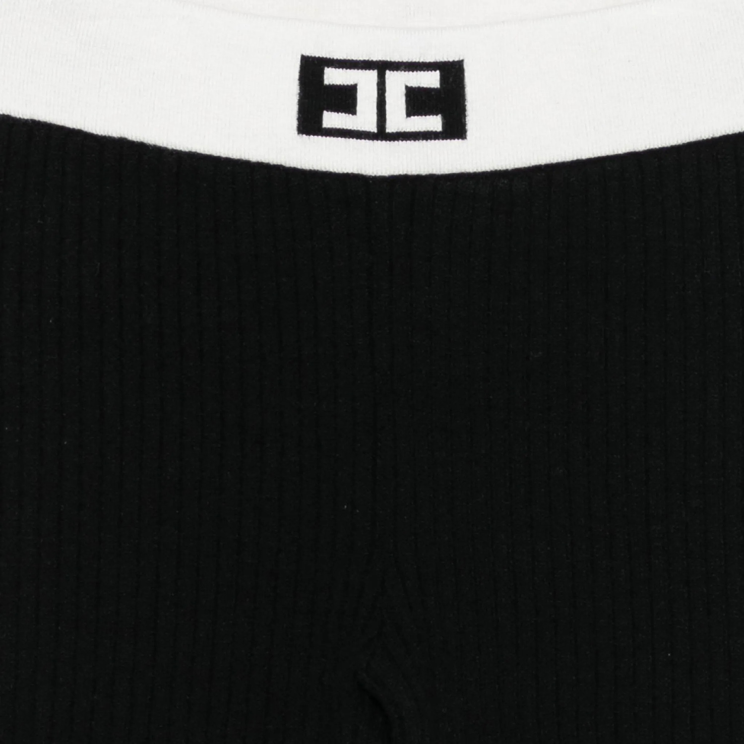 Elisabetta Franchi black knitted viscose set with a blouse and leggings. Both feature logo details.