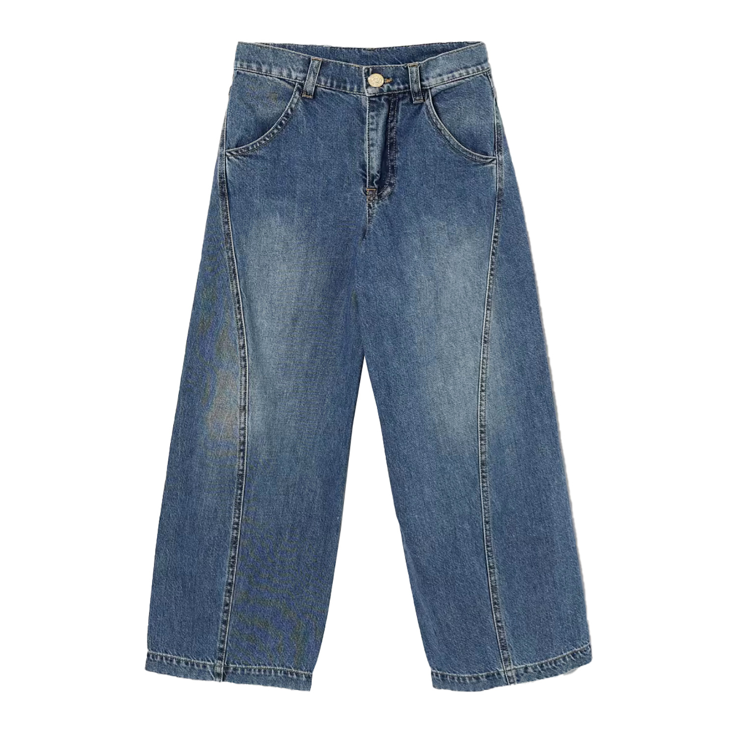 Elisabetta Franchi very soft & stretch cotton denim trousers with loose fit, a logo at the back and elastic adjusters inside of the waist.