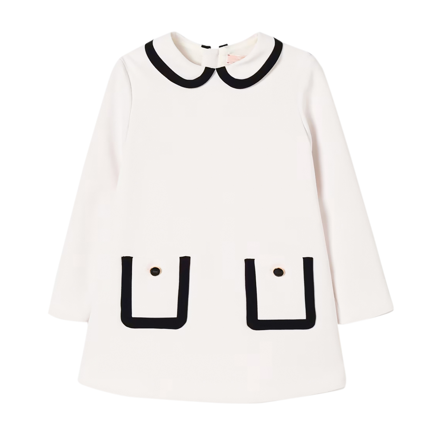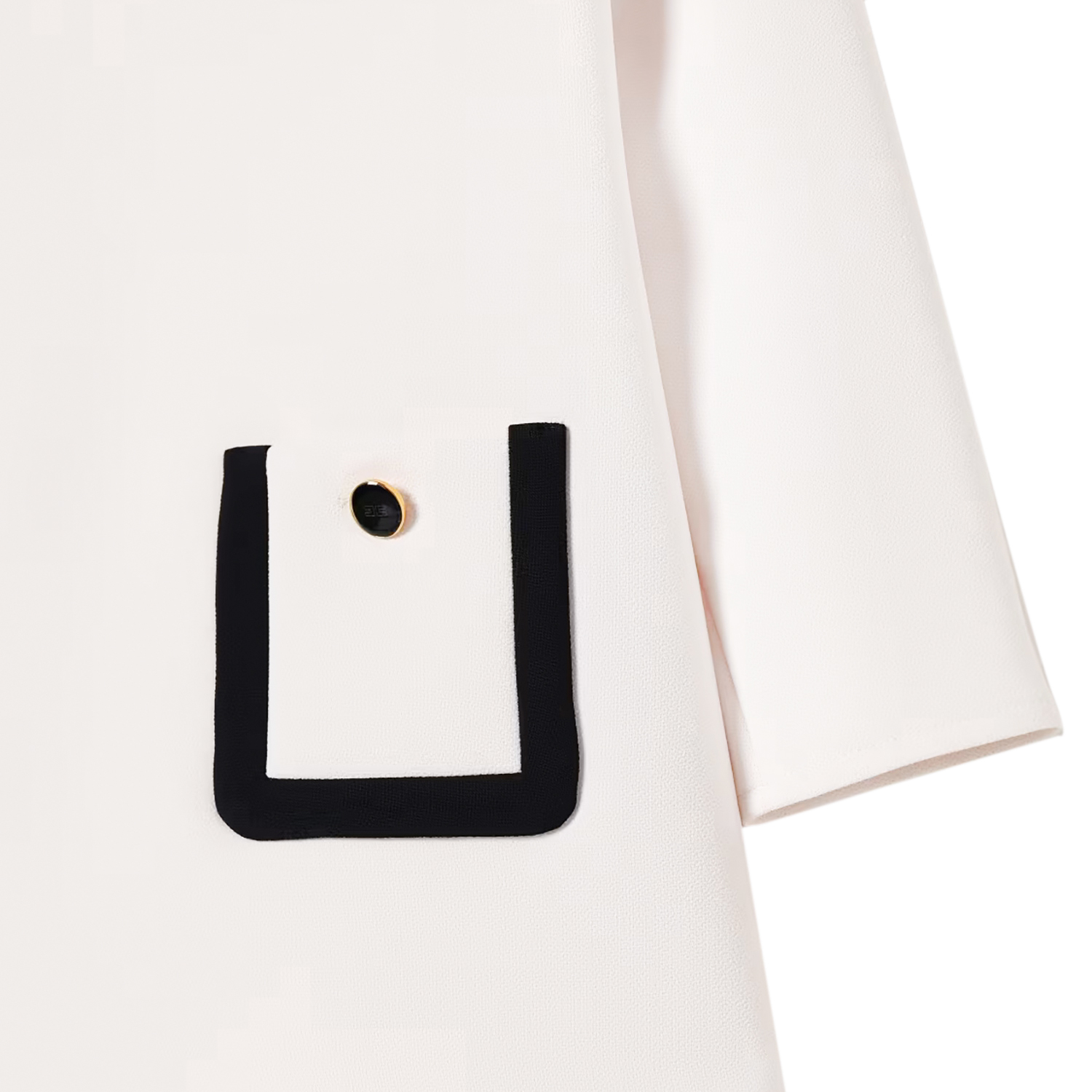 Elisabetta Franchi off-white crepe dress with black details on the pockets and on the collar and a discreet zip fastening at the back.