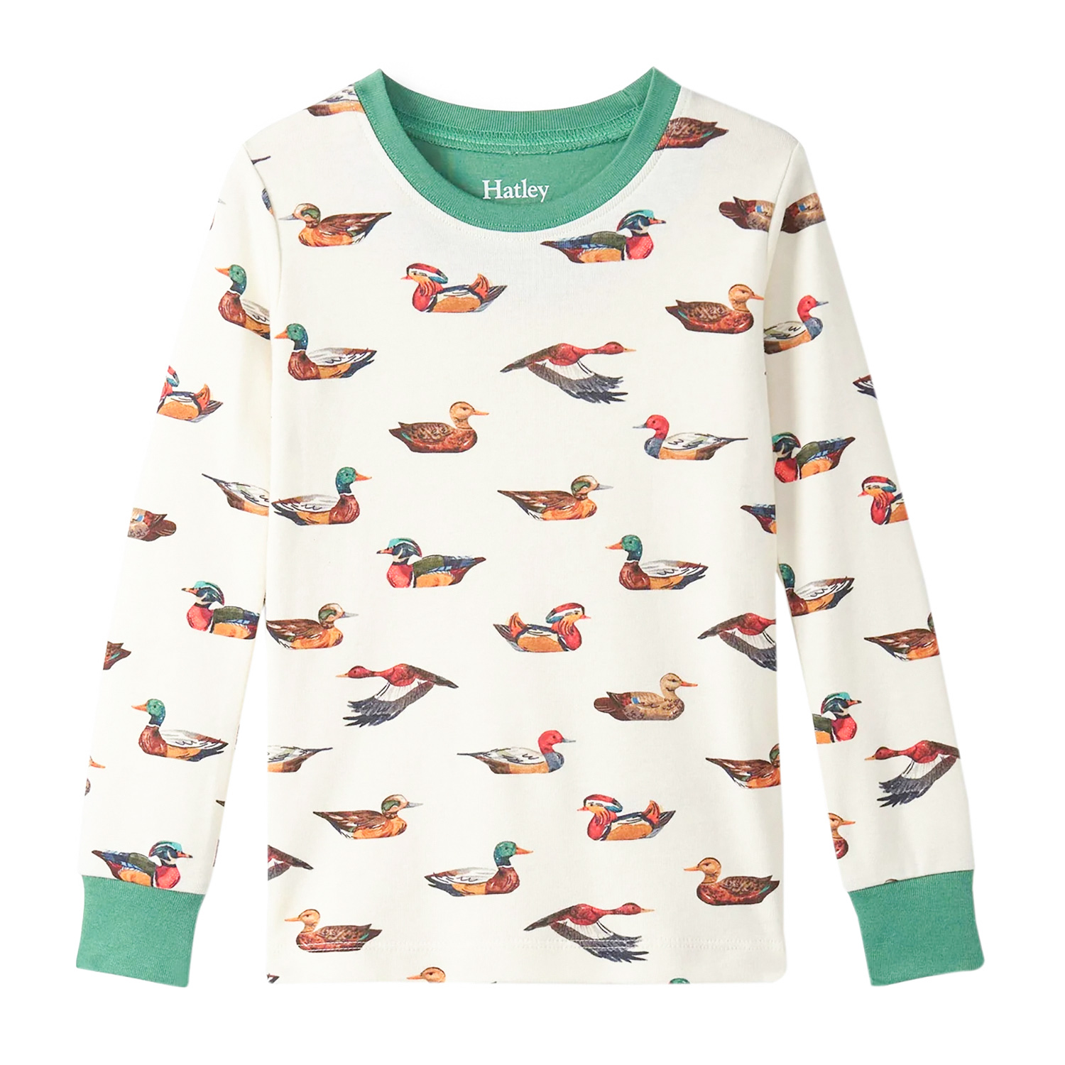 Hatley off-white organic cotton pyjamas with ducks printed.