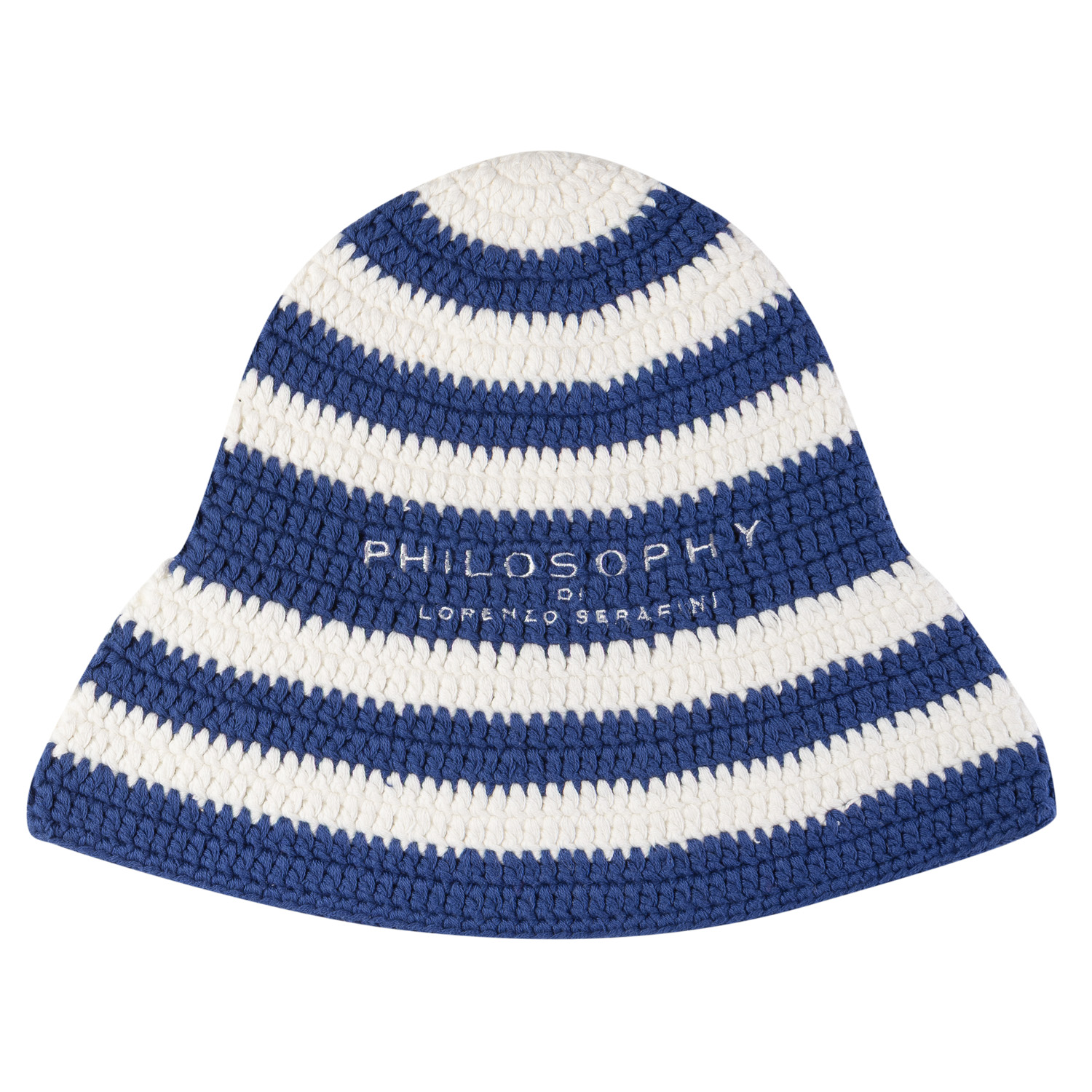 Philosophy di Lorenzo Serafini cotton crochet hat in blue striped color, featuring an embroidered logo.