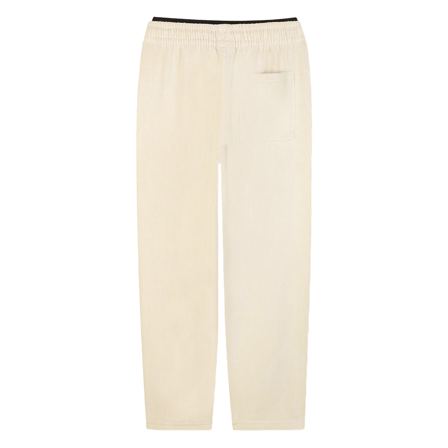 Hugo Boss beige sand corduroy casual elastic trousers with elasticated logo waistband and drawstrings.